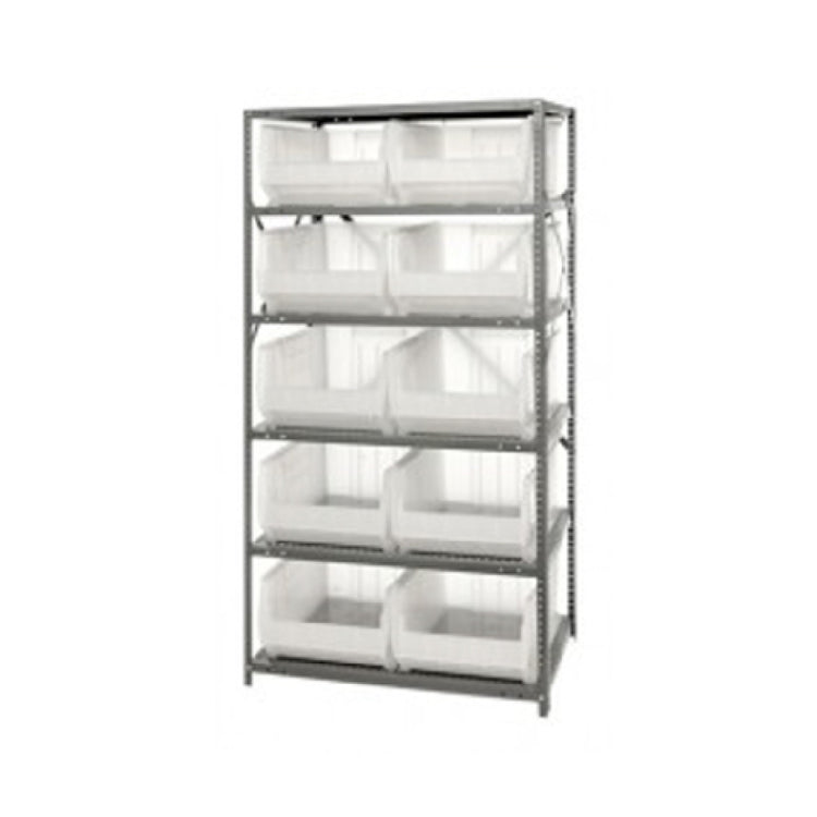 The Quantum 2475-954CL Shelving Unit 24"D x 36"L x 75"H Heavy Duty is an expertly crafted storage solution designed for industrial and professional environments. With a robust load capacity of 400 lbs per shelf, this unit ensures reliability and sturdiness, accommodating diverse and heavy items with confidence. The shelving unit includes eight shelves, providing ample storage space for a multitude of uses. Each shelf is complemented by ten clear bins, each measuring 23-7/8"L x 16-1/2"W x 11"H (QUS954), facilitating organized and visible storage of smaller components. The structure is supported by uprights and cross bars, enhancing its stability and durability. Featuring a galvanized steel finish, the unit not only offers a sleek, professional appearance but also resistance to corrosion, ensuring longevity even in demanding environments. The Quantum 2475-954CL is ideal for use in varied sectors, including manufacturing, warehousing, and retail, where efficient space utilization and accessibility are paramount. This shelving unit stands out in the market for its combination of heavy-duty construction, substantial storage capacity, and the inclusion of clear bins for easy inventory management.