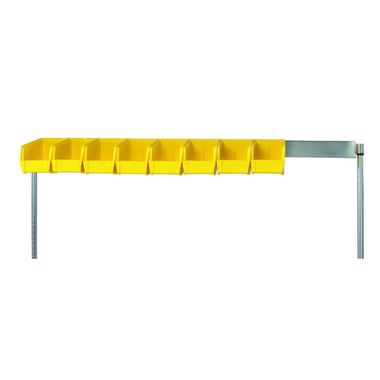 The Quantum 60BH Bin Holder 60"W Chrome Finish is a specialized storage solution designed to meet the demands of various industry segments. Featuring a width of 60 inches, this bin holder provides ample space to organize and store a wide assortment of items efficiently. The chrome finish not only adds a sleek, modern aesthetic but also enhances durability, making it a reliable choice for rigorous industrial use. Certified by the NSF, this bin holder complies with stringent health and safety regulations, ensuring reliable performance in environments where sanitation is paramount. Its robust and sturdy construction supports the organization of materials in diverse settings, from manufacturing plants to commercial kitchens. The Quantum 60BH's design is ideal for businesses seeking to optimize their storage capabilities while maintaining a high standard of quality and cleanliness. This bin holder's combination of size, finish, and certification makes it a versatile and valuable asset for professional environments that require dependable organizational solutions.