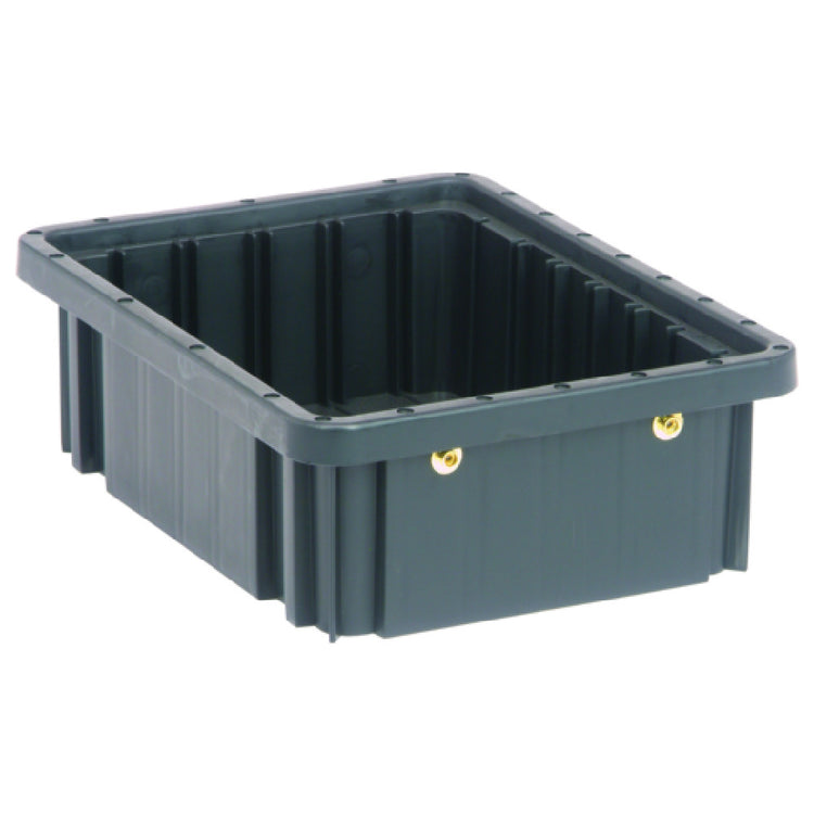 The Quantum DG91035CO Dividable Grid Container Conductive 11-7/8"L x 8-1/4"W x 3-1/2"H is a specialized storage solution designed to meet the exacting needs of various industrial segments. With precise dimensions of 11-7/8 inches in length, 8-1/4 inches in width, and 3-1/2 inches in height, this container offers a compact yet efficient storage format ideal for component organization and separation. Its conductive material properties are particularly suited for environments where static electricity is a concern, ensuring the safe handling and storage of sensitive electronic components. Manufactured in the USA, the container emphasizes quality and compliance with domestic production standards. Each unit is priced individually but must be ordered in multiples of 20, packed efficiently with 20 containers per case, catering to bulk purchasing needs typical in industrial settings. The solid black color not only provides a professional look but also aids in quick visual identification of contained items. This dividable grid container is an excellent choice for electronic manufacturing plants, assembly lines, and storage facilities seeking reliable, space-efficient, and conductive storage solutions, effectively supporting the unique demands of different industry segments that prioritize component protection and organized storage.
