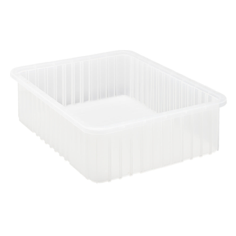 Quantum DG93060CL Dividable Grid Container - 22-1/2"L x 17-1/2"W x 6"H Clear is a meticulously designed storage solution engineered to meet the dynamic needs of various industrial markets. With dimensions of 22-1/2 inches in length, 17-1/2 inches in width, and 6 inches in height, this clear container offers generous space for organizing and storing components efficiently. Made in the USA, this product exemplifies superior craftsmanship and quality assurance. Its dividable grid design enables versatile compartmentalization, catering to diverse storage requirements across different sectors. This container's clear construction allows for easy visibility of contents, enhancing inventory management and operational efficiency. The DG93060CL must be purchased in multiples of three, with each case packed by three units, ensuring an economical and systematic approach to procurement and stocking. Ideal for environments demanding organized storage solutions, this container supports various applications, from manufacturing facilities to distribution centers, by providing a durable, flexible, and transparent storage option. Priced per each, this product is suitable for businesses focused on maximizing organizational capacity and maintaining streamlined operational processes.