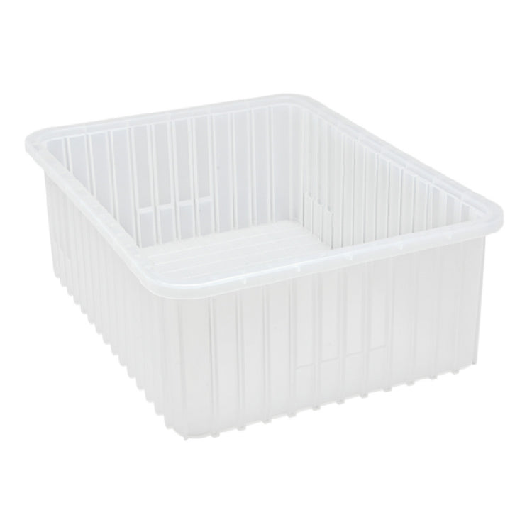 The Quantum DG93080CL Dividable Grid Container is a versatile storage solution, measuring 22-1/2 inches in length, 17-1/2 inches in width, and 8 inches in height. This clear container is designed to meet diverse industrial storage needs with precision. Constructed in the USA, it underscores reliability and demonstrates a commitment to quality manufacturing standards. This dividable grid container is perfect for organizing small to medium parts, streamlining inventory management, and ensuring efficient workspace utilization. It is engineered to be purchased in multiples of three, making it a practical choice for bulk storage requirements. The packaging configuration includes three containers per case, optimizing shipment and storage logistics. The clear construction of the Quantum DG93080CL allows for easy visibility of contents, facilitating quick identification and access in fast-paced environments. This product is particularly beneficial for industries that prioritize organized storage solutions, including manufacturing, warehousing, and logistics. Its robust design and functional dimensions make the Quantum DG93080CL Dividable Grid Container an integral component in maintaining order and accessibility within various professional settings.