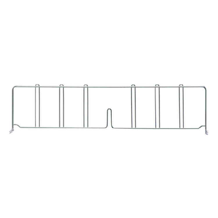The Quantum DIV30 Wire Shelf Divider, measuring 30"D x 8"H and featuring a chrome-plated finish, is a meticulously designed organizational solution for optimizing storage space on wire shelving units. This divider is crafted to fit seamlessly on standard wire shelves, effectively segmenting items to enhance both accessibility and visibility. The robust chrome plating not only provides an aesthetically pleasing finish but also contributes to the divider's durability and resistance to corrosion, making it suitable for environments that demand high hygiene standards. The 30-inch depth and 8-inch height dimensions ensure that this divider accommodates a wide range of products, from bulkier goods to smaller items, thereby offering versatility in storage applications. Its simple installation process allows for quick adjustments, enabling users to customize their shelving configurations with ease. This product is particularly valuable in retail, warehousing, and industrial settings where efficient space utilization is critical. By maintaining clear and organized shelving, it supports inventory management and retrieval efficiency. The Quantum DIV30 Wire Shelf Divider stands as an essential accessory for any facility looking to optimize its storage system with a focus on quality and functionality.