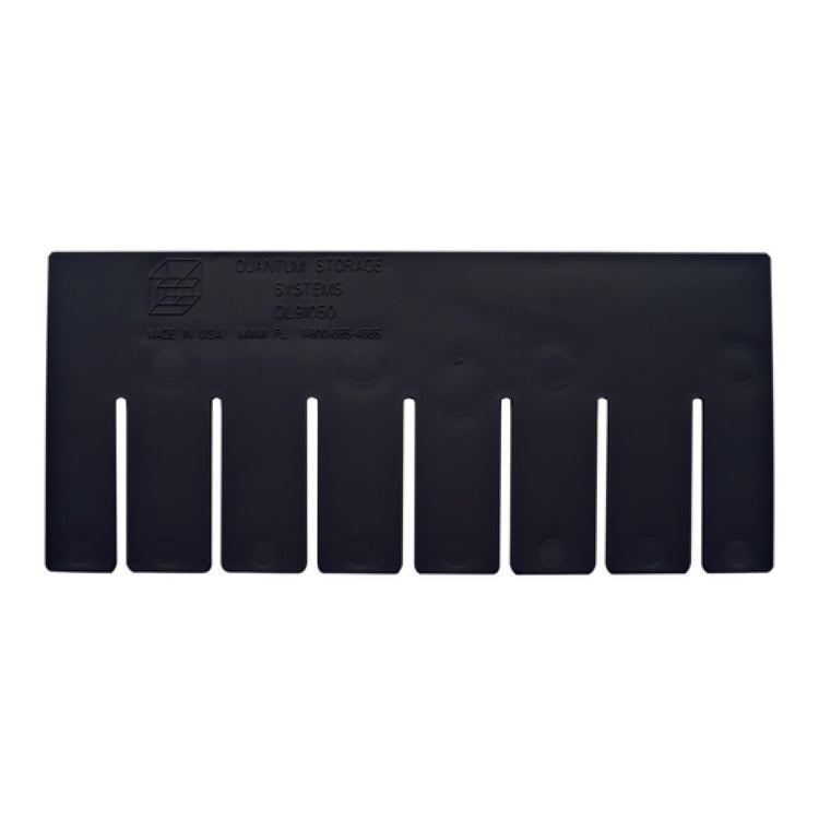 The Quantum DL91025CO Long Divider is a highly specialized component designed for precise applications in conductive storage systems, specifically tailored for use with the DG91025CO container series. This product is black and comes in a pack of six, ensuring ample provision for larger organizational needs. Manufactured in the USA, the DL91025CO Long Divider is crafted to provide exceptional conductivity, making it indispensable for environments where electrostatic discharge (ESD) protection is critical. Its conductive properties serve as a reliable solution for industries such as electronics and aerospace, where safeguarding sensitive components from static discharge is paramount. The dividers are engineered to seamlessly integrate with DG91025CO containers, optimizing storage efficiency while maintaining the integrity and safety of stored items. As a part of Quantum's commitment to quality, these dividers are built with durability in mind, ensuring they withstand the demands of rigorous industrial use. The compatibility and conductive nature of these dividers make them an invaluable addition to any ESD-sensitive workspace, enhancing the protective capabilities of your storage systems and contributing to the longevity of stored electronic components.