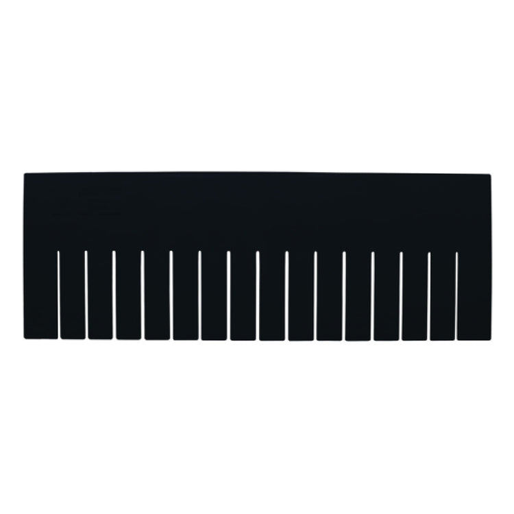 The Quantum DL93080CO Long Divider - conductive and designed for use with the DG93080CO - is an integral component for efficient organization within industrial storage systems. Available in black and sold in a convenient pack of six, this product is proudly made in the USA, ensuring high quality and durability. The conductive properties of the DL93080CO Long Divider are specifically engineered to meet the stringent requirements of industries that prioritize static electricity management, such as electronics manufacturing and semiconductor production. By effectively compartmentalizing storage containers, the DL93080CO aids in maintaining order and maximizing space utilization, which is crucial for operations that handle large inventories or require precise component segregation. The robust construction and precise manufacturing standards of these dividers make them a reliable choice for businesses that demand both functionality and longevity in their storage solutions. With its design tailored to fit seamlessly with the DG93080CO, this product offers a specialized solution for companies looking to optimize their storage efficiency while adhering to industry-specific safety standards. The Quantum DL93080CO Long Divider represents a critical tool for any operation seeking to improve its organizational capabilities in environments where conductive materials are an operational necessity.