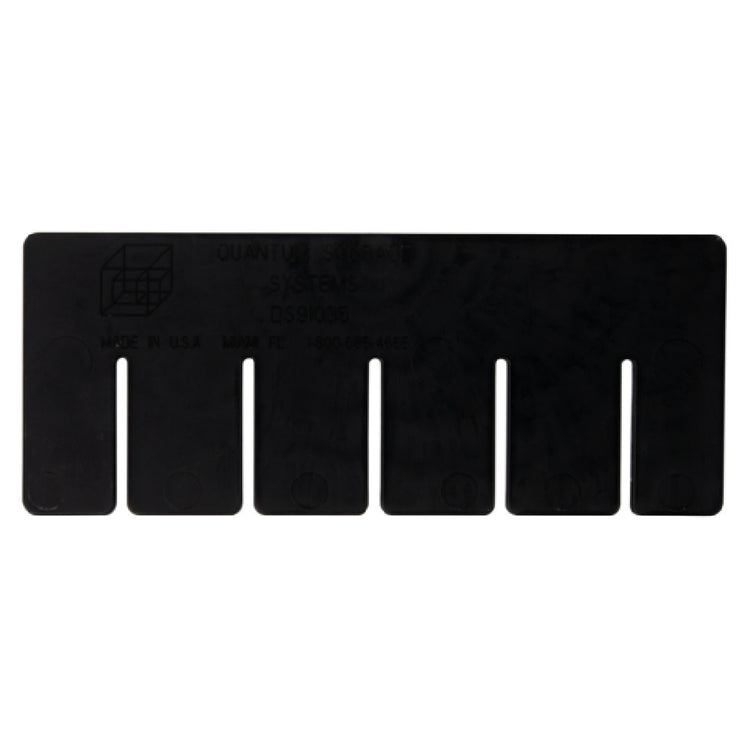 The Quantum DS92050CO Short Divider is a specialized component crafted for use with the DG92050CO, serving as a pivotal resource in various industrial applications. This product is available in a pack of six and is designed with conductive properties that distinguish it within its category. The black short divider is engineered to facilitate the organization and efficient division of materials within its corresponding container system, enhancing operational productivity and workflow efficiency. Proudly made in the USA, the Quantum DS92050CO Short Divider is recognized for its durability and quality manufacturing standards. Its conductive nature is particularly advantageous in environments where static electricity could pose operational challenges, thus broadening its appeal across multiple market segments that require precise and reliable material handling solutions. The thoughtful design and specialized functionality of the Quantum DS92050CO Short Divider make it an indispensable tool in industries such as electronics, where static-sensitive components need a secure and organized holding solution. This short divider embodies a blend of functionality, reliability, and quality, meeting the stringent demands of professional users who require consistency and excellence in their organizational systems.