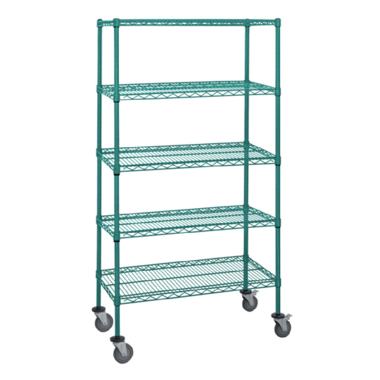 The Quantum M2448P46-5 Mobile Cart is engineered to meet the versatile needs of various industries, offering a robust structure with dimensions of 48"W x 24"D x 69"H. This mobile cart is equipped with five wire shelves, allowing for significant storage and organization solutions tailored to professional environments. It includes four 63"H posts that provide stability and support for the shelving system. Additionally, the cart comes with four donut bumpers, which safeguard against accidental impacts, enhancing the cart’s durability and longevity. For mobility, the Quantum M2448P46-5 is fitted with four 5" thermoplastic resin casters, two of which are equipped with brakes to ensure secure positioning when stationary. The cart is finished with a green epoxy antimicrobial coating, which offers an added layer of protection against microbial growth, making it suitable for healthcare, food service, and laboratory settings where hygiene is paramount. This feature-rich mobile cart combines functionality with practical design, catering to the organizational demands of different market segments within its field of application.