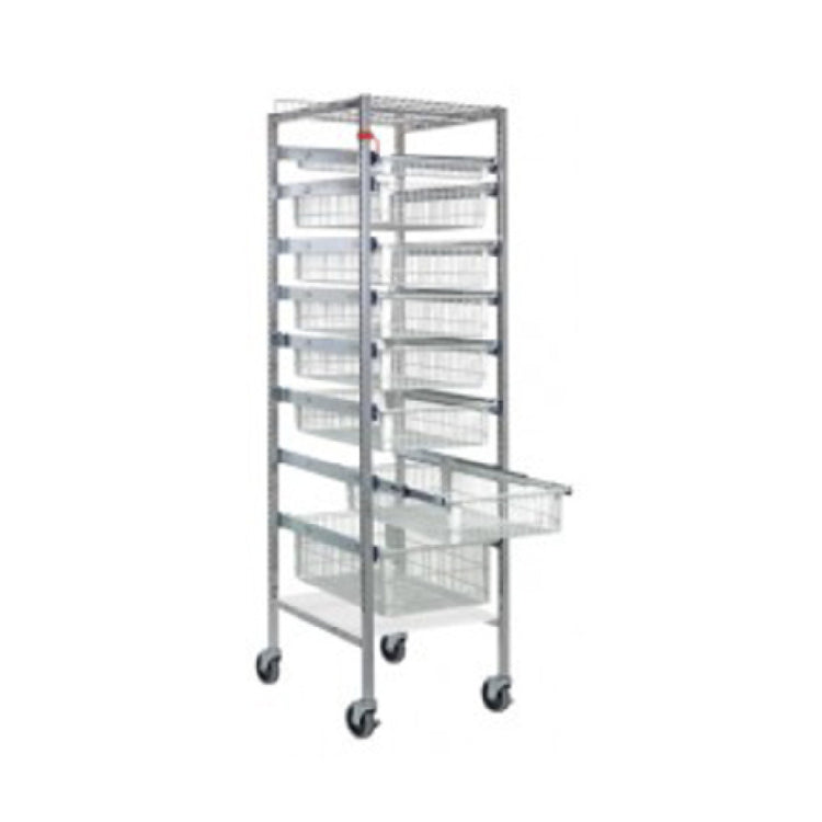 The Quantum PS-S2475-8WB Partition Store Starter Unit With Wire Baskets is a versatile storage solution designed for organizational efficiency and space optimization. Measuring 19-1/2"W x 24"D x 75"H, this unit is tailored for various industry applications that require systematic storage. It includes a suite of wire baskets - one 3", six 5", and one 8" basket - providing diverse compartmentalization options. The inclusion of a safety top and bottom dust cover enhances the unit's functionality by ensuring stored items are protected from dust and debris, essential for maintaining cleanliness in environments such as medical facilities or manufacturing plants. Additionally, the unit comes equipped with 25 hanging label tags, facilitating easy identification and retrieval of stored items, a feature particularly beneficial in warehouses and retail sectors. The chrome-plated finish not only gives it a sleek and professional appearance but also ensures durability and resistance to corrosion, making it suitable for both industrial and commercial settings. This starter unit serves as a foundational component in partitioned storage systems, allowing for scalability and customization according to specific organizational needs. Its robust construction and practical features make it an essential asset for optimizing storage efficiency across various market segments.
