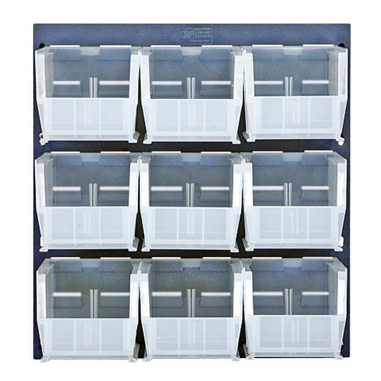 The Quantum QLP-1819-230-9CL Louvered Panel Wall Mounted 18"L x 19"H is a highly durable storage solution, expertly crafted from heavy-duty 16-gauge cold rolled steel. Its robust construction is complemented by a sleek gray enamel-coated finish, designed to withstand the demands of various industrial environments. This wall-mounted panel is engineered to enhance organization efficiency, featuring nine clear bins (QUS230) that allow for easy visibility and access to stored items. The 18-inch length and 19-inch height make it a versatile fit for numerous spaces, optimizing storage in workshops, warehouses, and retail settings. Despite its comprehensive features, the unit's mounting hardware is not included, providing users the flexibility to choose the best installation method for their specific needs. The Quantum QLP-1819-230-9CL is an ideal choice for industries requiring reliable and adaptable organizing solutions, offering visible and efficient storage that supports streamlined operations.