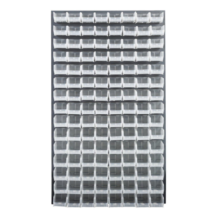 The Quantum QLP-3661-220-120CL Louvered Panel Wall Mounted unit is a meticulously engineered storage solution, measuring 36 inches in length, 8 inches in depth, and 61 inches in height. This robust panel is crafted from heavy-duty 16-gauge cold rolled steel, ensuring durability and longevity in demanding industrial environments. The gray enamel coated finish not only provides a sleek, professional appearance but also adds a layer of protection against wear and corrosion. A standout feature of this panel is its inclusion of 120 clear QUS220 bins, offering extensive storage capabilities for organized inventory management. These bins are ideal for environments that require clear visibility of stored items, such as manufacturing facilities, workshops, and retail settings. The panel is designed for wall mounting, optimizing space utilization in crowded workspaces. While mounting hardware is not included, the versatile design allows for easy integration into various storage systems. Targeting different market segments within the industry, the Quantum QLP-3661-220-120CL Louvered Panel provides a reliable and efficient organizational solution that supports both small-scale operations and large industrial applications, making it a valuable addition to any setting demanding high-efficiency storage management.