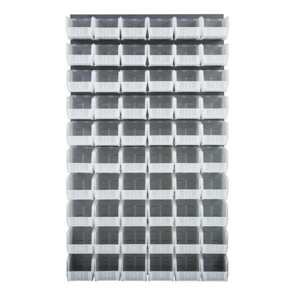 The Quantum QLP-3661-230-60CL Louvered Panel Wall Mounted is a premium organizational solution, engineered for efficiency and durability. Measuring 36 inches in length, 11 inches in depth, and 61 inches in height, it is designed to accommodate a wide range of storage needs. This louvered panel is constructed from heavy-duty 16-gauge cold rolled steel, ensuring robust performance and longevity in demanding environments. The elegant gray enamel coated finish not only enhances its aesthetic appeal but also provides a protective layer against wear and corrosion. Specifically tailored for industrial and commercial use, this louvered panel includes 60 QUS230 clear bins, offering ample storage and easy visibility of contents. While the mounting hardware is not included, its versatile wall-mounted design maximizes floor space, making it ideal for workshops, manufacturing facilities, and storage rooms. The Quantum QLP-3661-230-60CL Louvered Panel stands out for its capacity to organize and store a multitude of items securely, meeting the diverse needs of different industries by providing an adaptable and reliable storage solution.