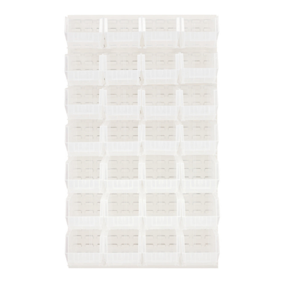 The Quantum QLP-3661HC-240-28CL Louvered Panel Wall Mounted measures 36"L x 15"D x 61"H and is a versatile storage solution designed for optimizing organization in various industrial and commercial settings. This unit is constructed from heavy-duty 16 gauge cold rolled steel, providing exceptional durability and strength for rigorous use. The oyster white enamel coated finish not only enhances its aesthetic appeal but also offers added protection against corrosion and wear. It includes 28 clear bins, specifically the QUS240 model, which are perfect for easy visibility and quick access to stored items, making it suitable for businesses requiring efficient storage and retrieval systems. This louvered panel is ideal for environments such as workshops, warehouses, and retail spaces, offering a practical approach to inventory management by maximizing vertical space. Although mounting hardware is not included, the wall-mounted design facilitates easy installation on various surfaces, ensuring flexible integration into existing storage setups. The Quantum QLP-3661HC-240-28CL is engineered to meet diverse organizational needs, promoting streamlined operations and enhanced productivity across different sectors. Its robust construction and thoughtful design make it an indispensable asset for facilities seeking to optimize their storage capabilities with clear visibility and accessibility features.