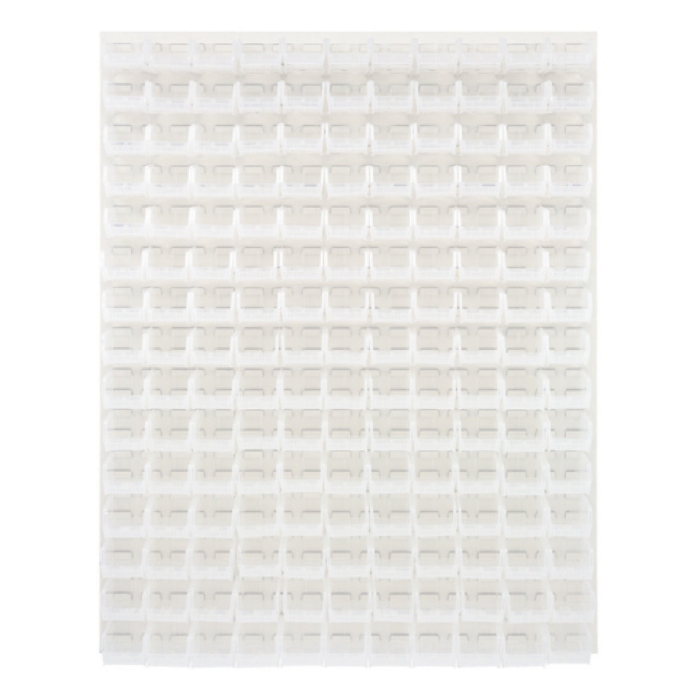 The Quantum QLP-4861HC-220-165CL Louvered Panel Wall Mounted 48"L x 8"D x 61"H is a high-capacity storage solution engineered for industrial and commercial environments. Constructed from heavy-duty 16 gauge cold rolled steel, this louvered panel provides exceptional durability and strength, ensuring it can withstand demanding work conditions. Its oyster white enamel coated finish not only enhances its resistance to wear and corrosion but also provides a sleek, professional appearance suitable for any setting. The unit includes 165 clear bins, model QUS220, offering ample organizational capacity for various small parts or components, which makes it an ideal choice for manufacturing plants, workshops, and inventory management facilities. While mounting hardware is not included, the panel’s design is optimized for wall mounting, making it a space-efficient storage option. The precise dimensions of 48 inches in length, 8 inches in depth, and 61 inches in height make it adaptable to diverse spatial configurations without compromising on storage capabilities. The Quantum QLP-4861HC-220-165CL Louvered Panel is a reliable and practical asset for industries requiring robust storage solutions with easy visibility and access to stored items.