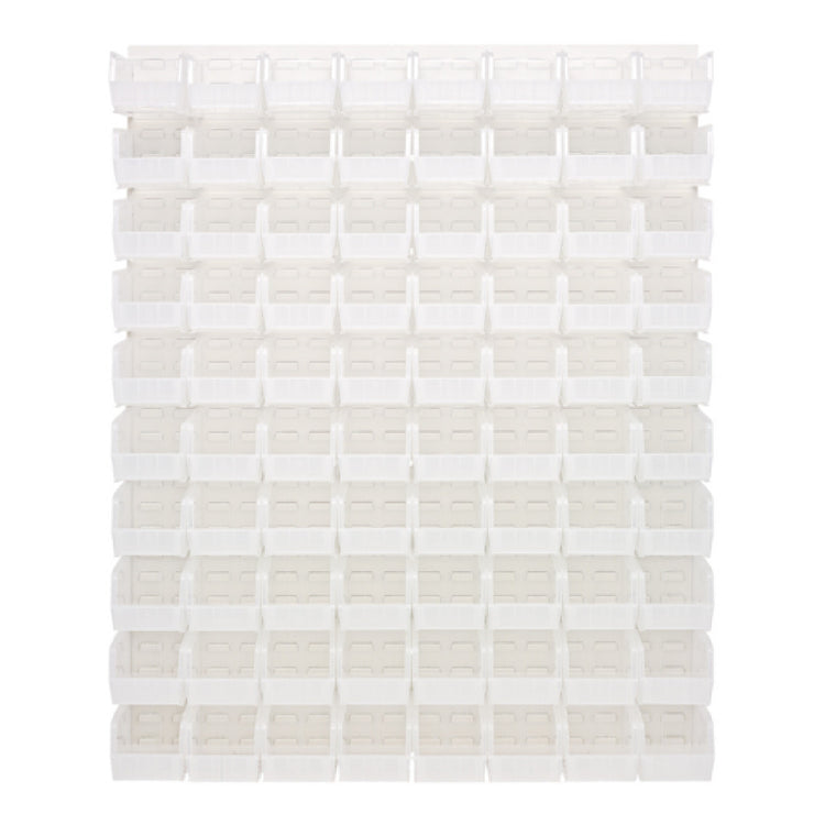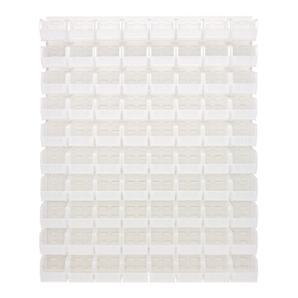 The Quantum QLP-4861HC-230-80CL Louvered Panel Wall Mounted unit is a versatile and highly functional storage solution, measuring 48 inches in length, 11 inches in depth, and 61 inches in height. This product is constructed from heavy-duty 16-gauge cold-rolled steel, offering exceptional durability and strength. The panel is finished with an oyster white enamel coating, adding a sleek, professional appearance to its robust design. It comes equipped with 80 QUS230 clear bins, providing ample storage space for various items, making it an ideal choice for industries that require organized and efficient storage solutions. Its louvered design allows for easy access and visibility of stored contents, facilitating streamlined workflows in settings such as warehouses, workshops, and manufacturing facilities. Notably, the mounting hardware is not included, allowing users the flexibility to choose their preferred installation method. This louvered panel wall unit serves as a reliable and adaptable storage system that caters to the diverse needs of professionals across multiple sectors.