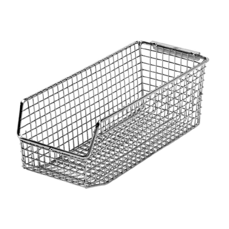 The Quantum QMB524C Mesh Stack And Hang Bin 11"W X 4-3/4"L X 4"H Rectangular is a versatile storage solution that combines functionality with durability, ideal for a range of industrial and commercial applications. This bin features a robust rectangular design, measuring 11 inches in width, 4-3/4 inches in length, and 4 inches in height, providing ample storage space while maximizing organization efficiency. The stackable nature of the bin allows for seamless vertical storage, optimizing space in warehouses and storage facilities. Additionally, the rear hanger feature facilitates easy hanging, enhancing accessibility and visibility in environments where quick retrieval is essential. The chrome finish not only adds a sleek aesthetic appeal but also provides a durable surface that withstands the rigors of heavy-duty use, ensuring longevity and reliability. Particularly beneficial for industries that prioritize cleanliness and visibility, the mesh construction allows for easy identification of contents, reducing retrieval times and improving overall workflow efficiency. The Quantum QMB524C is an indispensable asset for businesses looking to streamline their operations, offering a practical and adaptable solution for organizing a wide variety of items, from small parts and components to tools and accessories, across diverse market segments.