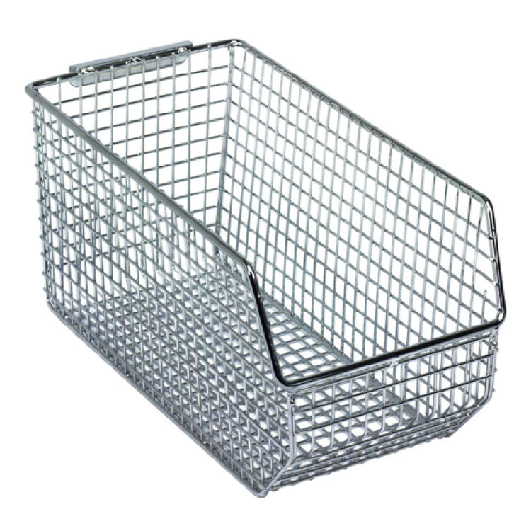 The Quantum QMB530C Mesh Stack And Hang Bin is a versatile storage solution designed for efficiency and adaptability across various industry applications. Measuring 10-3/4 inches in width, 5-1/2 inches in length, and 5 inches in height, this rectangular bin provides ample space for organizing tools, parts, or products. Its stackable design allows for easy vertical storage, maximizing space in constrained environments. The rear hanger feature enhances its functionality by enabling it to be mounted on compatible systems, making it ideal for modular storage setups. Crafted with a chrome finish, this bin not only boasts a sleek appearance but also ensures durability and resistance to corrosion, making it suitable for demanding industrial settings. The Quantum QMB530C is engineered to meet the diverse needs of sectors such as manufacturing, warehousing, and retail, where efficient storage and easy access to components are paramount. Its robust construction and practical design make it a reliable choice for optimizing storage solutions while maintaining an organized workspace. Whether used in a commercial setting or an industrial environment, the Quantum QMB530C Mesh Stack And Hang Bin stands out as a dependable option for those seeking functionality and durability in their storage systems.