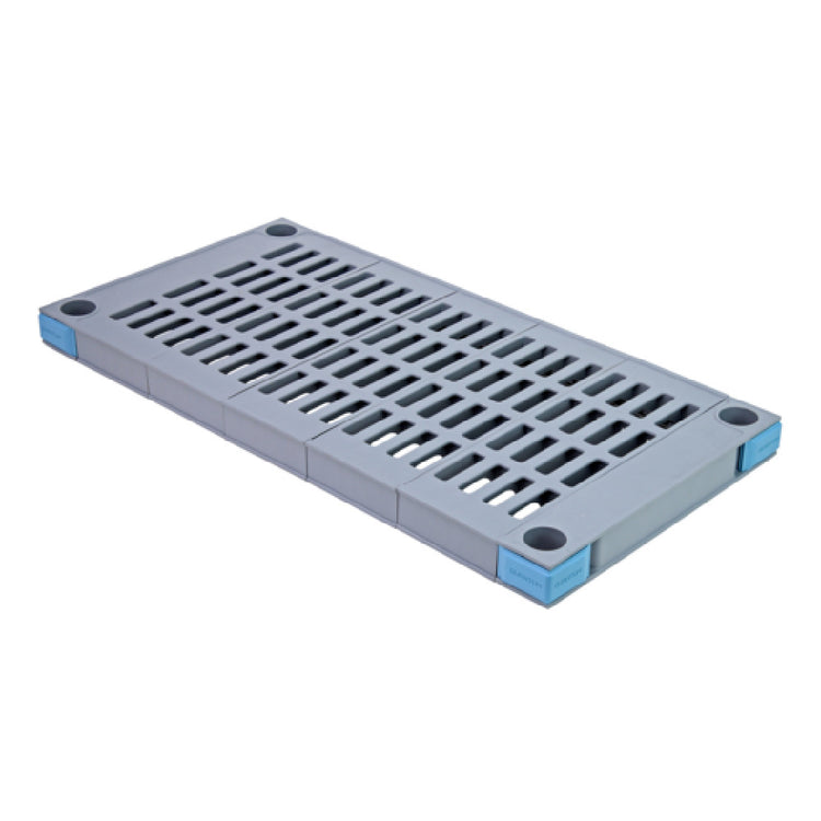 The Quantum QP2430VS Millenia Shelf is a versatile storage solution meticulously designed to meet a variety of industrial needs with its impressive technical specifications. Measuring 30 inches in width and 24 inches in depth, this shelf boasts a remarkable load capacity of up to 1000 pounds, demonstrating its robust construction and suitability for heavy-duty applications. A notable feature of the QP2430VS is its removable open grid mat, which not only facilitates easy cleaning but also enhances air circulation, ensuring stored items remain in optimal condition. Crafted entirely from high-quality polymer, the shelf offers exceptional durability and resistance to corrosion, making it a reliable choice for environments where hygiene and long-term performance are paramount. Its sleek gray finish adds a touch of modernity, seamlessly blending into various settings. Certified by the NSF, the Quantum QP2430VS complies with stringent health and safety standards, offering peace of mind for businesses focusing on quality assurance. Proudly made in the USA, this Millenia Shelf is an ideal asset for sectors ranging from healthcare and food services to manufacturing and warehousing, where efficiency, reliability, and practical design are crucial. Its combination of strength, adaptability, and compliance makes it a standout choice in the realm of industrial shelving.