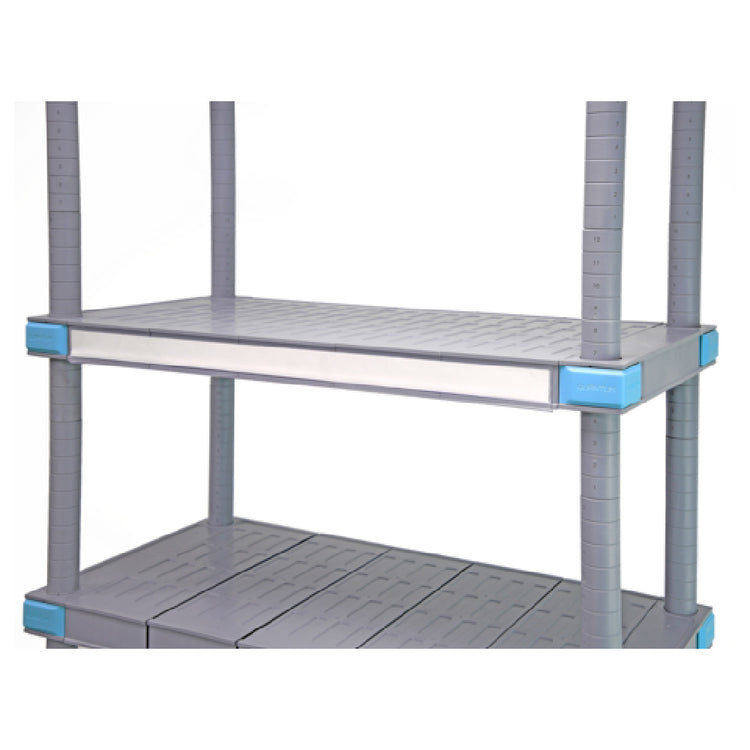 The Quantum QPLH47C Label Holder - 47.5"L Clear is a specialized component designed for use with 54"D Millenia shelves, providing a precise fit that meets the demanding requirements of commercial and industrial storage solutions. Featuring a length of 47.5 inches, this label holder is ideal for extensive labeling applications, ensuring that all items stored on the shelves are clearly identified for efficient inventory management. The clear construction of the label holder not only offers unobstructed visibility of the labels but also contributes to a clean, organized appearance. This product is crafted with materials that ensure durability and long-lasting performance in various environmental conditions, making it a reliable choice for warehouses, retail environments, and other high-traffic areas where organization and clarity are paramount. Its seamless integration with Millenia shelves enhances the functionality and adaptability of the shelving units, allowing users to customize their storage systems to suit specific operational needs. Whether used in logistics, retail, or industrial settings, the Quantum QPLH47C Label Holder offers a straightforward, effective labeling solution that supports streamlined operations and improved workflow management.