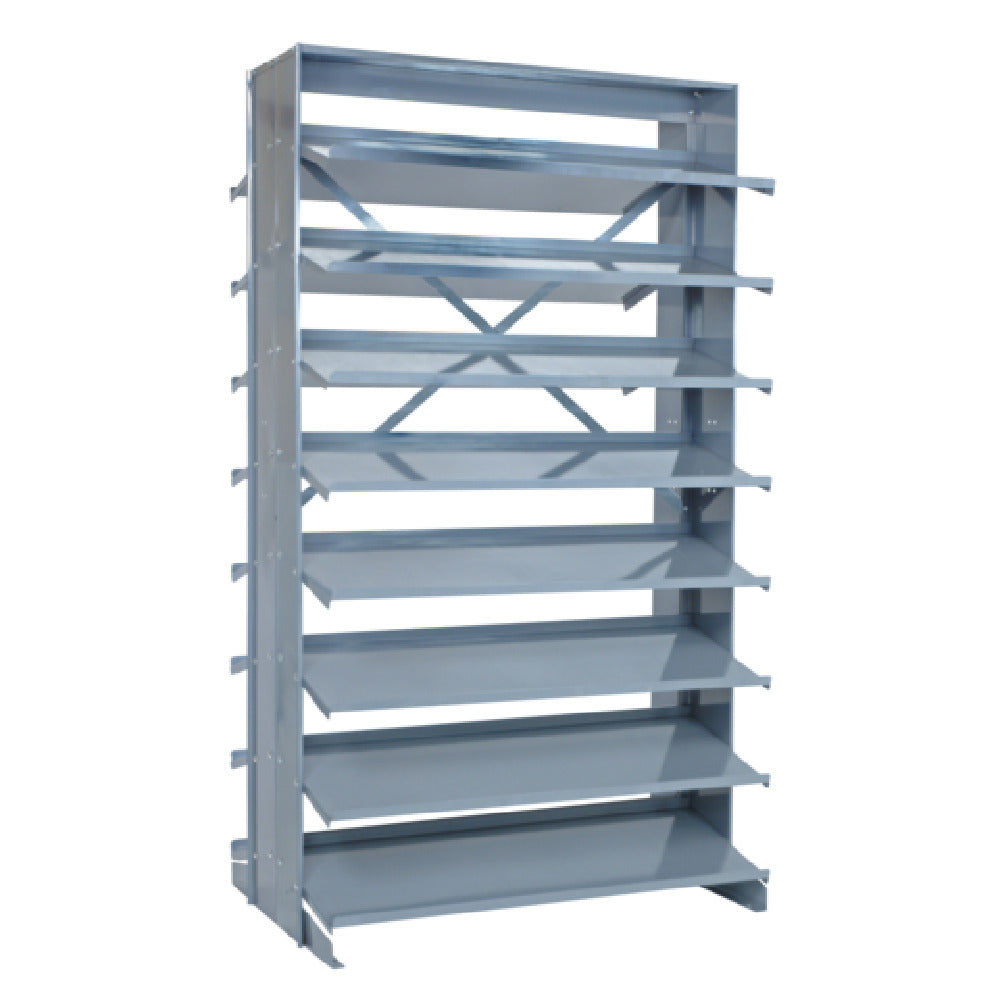 The Quantum QPRD-6 Pick Rack Slopped Double-sided is engineered for optimal organization and accessibility, measuring 24"L x 36"W x 63-1/2"H, offering a substantial 800 lbs. capacity. This robust pick rack features a unique double-sided design with sloped shelves, enhancing efficiency and ease of use. Specifically configured with 16 shelves, it provides ample space for storing a diverse assortment of items, making it a versatile asset across various industries such as warehousing, inventory management, and retail environments. Although bins are not included, the shelving configuration is designed to accommodate them, thereby facilitating custom storage solutions. This pick rack is ideally suited for environments that require quick access and straightforward organization of materials, aiding in streamlining operations and maximizing workspace efficiency. Its solid construction and thoughtful design ensure durability and longevity, making it a reliable choice for businesses seeking to optimize their storage solutions with a high-capacity, user-friendly system.
