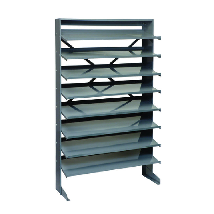 The Quantum QPRS-000 Pick Rack Slopped Single-sided is a versatile storage solution designed for efficient space utilization in various industries. With dimensions of 12"D x 36"W x 60"H, this rack is engineered to maximize vertical storage while maintaining a compact footprint. It boasts a robust weight capacity of 400 lbs., making it suitable for storing a wide range of materials. The rack includes eight shelves, providing ample organizational options for streamlined operations. Constructed from durable steel, the Quantum QPRS-000 is built to withstand the rigors of industrial environments, ensuring longevity and reliability. Its slopped, single-sided design facilitates easy access to stored items, enhancing workflow efficiency in settings such as warehouses, workshops, and retail environments. Though bins are not included, this rack's adaptable nature allows users to customize their storage system according to their specific needs. Ideal for businesses seeking a dependable and efficient storage solution, the Quantum QPRS-000 Pick Rack supports various segment markets by improving storage organization and accessibility.