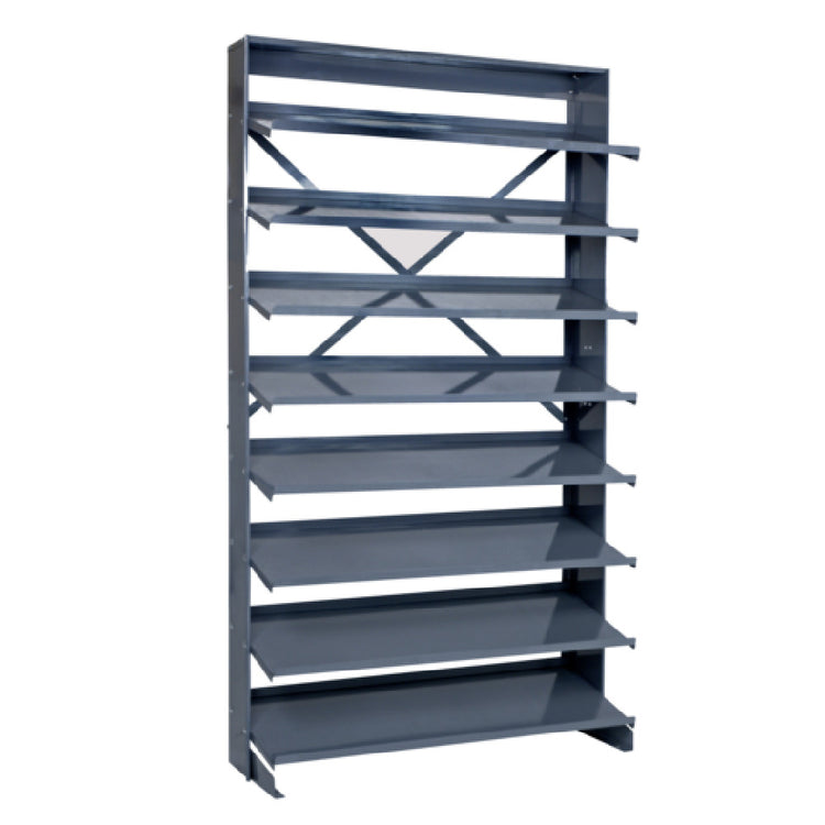 The Quantum QPRS18-6 Pick Rack Slopped Single-sided is a versatile storage solution engineered to meet the needs of various industrial sectors. With dimensions of 18"D x 36"W x 63-1/2"H, this pick rack offers a substantial storage capacity of up to 400 lbs. Its single-sided design makes it an ideal choice for spaces where accessibility and space optimization are paramount. The rack is constructed from durable steel, ensuring long-lasting performance even in demanding environments. Featuring eight slopped shelves, it facilitates easy access and organization of items, although the bins are not included with the purchase. The slopped design aids in effortless item retrieval, enhancing efficiency in warehouses, factories, and retail settings. This product stands out for its robust construction and practical design, catering to businesses looking to streamline their storage operations. Its steel build provides a sturdy framework that can withstand the rigors of daily use, while the generous shelf count allows for ample storage options. The Quantum QPRS18-6 Pick Rack is a reliable asset for industries requiring efficient and durable storage solutions, making it a cornerstone in inventory management systems across multiple sectors.