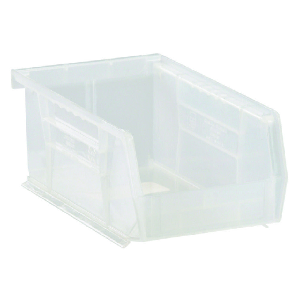 The Quantum QUS220CL Bin Stacking or Hanging 4-1/8"W x 7-3/8"L x 3"H is an advanced storage solution designed to meet diverse organizational needs across various industry sectors. Featuring precise dimensions of 4-1/8" width, 7-3/8" length, and 3" height, this bin is versatile for both stacking and hanging purposes. It is equipped with front, back, and side grips for easy handling, alongside an anti-slide lock to ensure secure stacking. The bin includes a single divider slot, providing flexibility in item organization, while the rear hanger feature enhances its adaptability for hanging systems. For added convenience, a molded-in label holder is integrated for clear content identification. Manufactured from durable polypropylene, this bin is translucent, allowing quick visual inventory checks, and is proudly made in the USA. This product must be purchased in multiples of 24, as it is packed 24 per case, making it a practical choice for bulk storage needs. This bin's robust design makes it ideal for industries requiring efficient, reliable storage solutions such as manufacturing, healthcare, and retail environments, offering a combination of durability and functionality for optimal space management and organization.