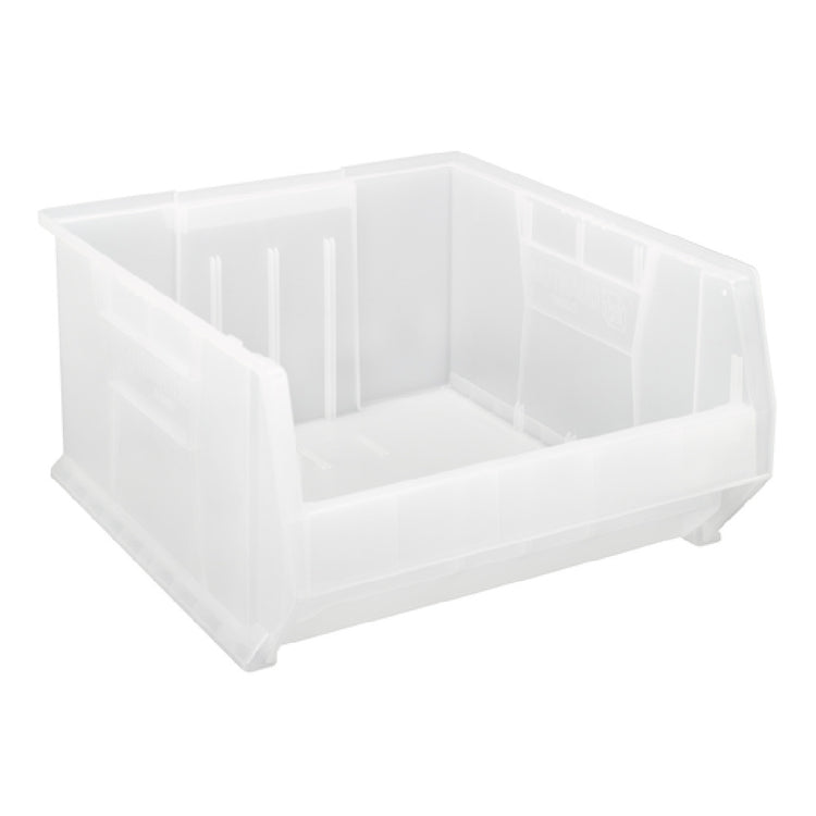 The Quantum QUS957CL Hulk 24" Container is a highly durable storage solution with dimensions of 23-7/8"L x 22-1/2"W x 12"H, making it a versatile choice for various industrial needs. Crafted from clear polypropylene, this container combines strength with transparency for easy visibility of contents, enhancing operational efficiency in fast-paced environments. Its stackable design maximizes storage space, crucial for warehouses and manufacturing facilities where efficient use of space is paramount. Proudly made in the USA, this container aligns with quality manufacturing standards, ensuring long-lasting reliability. The robust build of the Quantum QUS957CL Hulk container is ideal for heavy-duty applications, supporting a wide range of uses in different segment markets such as logistics, inventory management, and supply chain operations. Its clarity and size make it particularly beneficial for environments requiring quick identification of parts or products. This container offers a unique value proposition by being both strong and transparent, meeting diverse storage needs while facilitating ease of organization and access. Its practical dimensions and stackability also cater to businesses seeking to streamline their storage capabilities, making it an essential component for efficient and orderly warehouse operations.