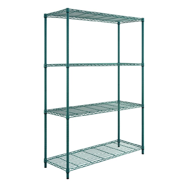 The Quantum RWR72-1830LDP Convenient Shelving Unit Pack is a versatile and practical storage solution ideal for a range of professional environments, including commercial kitchens, healthcare facilities, and retail settings. This 4-tier shelving unit measures 30 inches in width, 18 inches in depth, and 72 inches in height, providing ample space for organizing a variety of items. Each shelf boasts a robust load capacity of 300 lbs, making it suitable for heavy-duty storage needs. The unit includes four wire shelves, four posts, and four packs of split sleeves, each containing four pairs, ensuring a secure and customizable assembly. With its green epoxy antimicrobial finish, this shelving unit is designed to inhibit the growth of bacteria, making it an excellent choice for areas where hygiene is paramount. The Quantum Shelving Unit is NSF certified, underscoring its compliance with rigorous public health and safety standards. Shipped KD (knocked down), it allows for convenient transport and storage before assembly. This shelving unit is engineered to meet the demands of various industry segments by offering a balance of durability, functionality, and ease of maintenance, making it a reliable and efficient choice for organized storage in any professional setting.