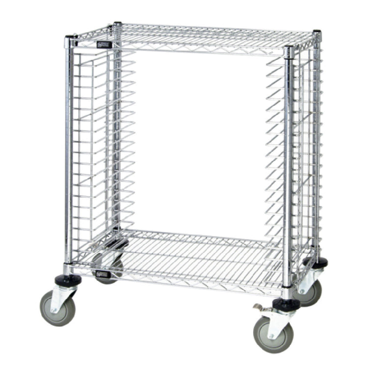 Quantum TC-19CO Tray Cart Mobile Conductive is a versatile and compact solution designed for efficient material handling and storage. With dimensions of 30"W x 18"D x 39"H, this half-size tray cart is crafted for spaces where mobility and conductive properties are essential. The cart boasts a capacity to hold 19 trays, making it an ideal choice for industries that require systematic organization and transport of items, such as laboratories or electronics manufacturing. Featuring a side-loading design, it offers easy access and handling of contents. The inclusion of casters enhances mobility, allowing for seamless movement across workspaces. Constructed with a chrome-plated finish, the TC-19CO tray cart not only ensures durability but also offers an aesthetically pleasing appearance that complements various industrial environments. Its conductive nature is particularly beneficial in settings where static buildup might pose risks, thereby safeguarding sensitive materials and components. This tray cart is engineered to meet the specific demands of different segment markets within the industry, emphasizing practicality, efficiency, and protection. Whether used in a high-tech environment or a traditional setting, the Quantum TC-19CO Tray Cart Mobile Conductive is an indispensable tool for enhancing operational workflow and safeguarding valuable items.