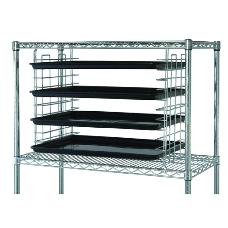 The Quantum TS18C Tray Slide 18"D - (10) Tray Capacity is a meticulously designed component tailored for efficient storage and organization in various industrial settings. Featuring a robust capacity to accommodate ten trays, this tray slide system is engineered for versatility and convenience. The 18-inch depth ensures ample space for a variety of tray sizes, supporting diverse operational needs. Its chrome-plated finish not only enhances durability but also presents a sleek, professional appearance that is easy to maintain. This product is NSF certified, confirming its compliance with stringent health and safety standards, making it an ideal choice for environments that demand high levels of hygiene and reliability. Sold as a pair, the Quantum TS18C Tray Slide integrates seamlessly into existing infrastructure, offering a practical solution for optimizing space and enhancing operational efficiency. Its construction is aimed at catering to sectors such as food service, healthcare, and hospitality, where organized tray management is crucial. By focusing on quality, functionality, and compliance, the Quantum TS18C Tray Slide stands out as a valuable addition to any professional setting requiring dependable tray storage solutions.