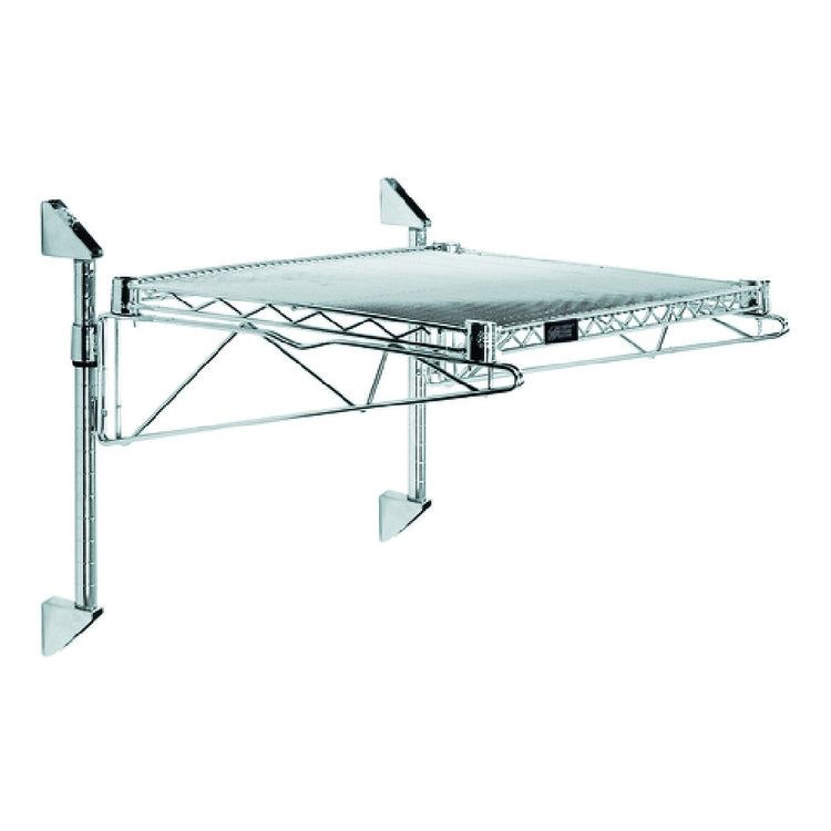 The Quantum WC14-CB1842C Cantilever Single Shelf Post Wall Mount is a versatile and robust shelving solution designed for efficient storage and display. Featuring a single shelf measuring 42 inches in width and 18 inches in depth, this unit is ideal for various commercial and industrial settings where space optimization is key. The shelf is supported by two 14-inch posts and two 18-inch cantilevers, providing stable and reliable support for a range of items. The inclusion of two mounting brackets ensures secure installation on the wall, maximizing vertical space utilization. The chrome-plated finish not only adds a sleek, modern aesthetic but also enhances durability and resistance to corrosion. This wall mount shelf is NSF certified, assuring compliance with public health and safety standards, which is particularly important in environments such as food service, healthcare, and laboratories. The Quantum WC14-CB1842C is a practical choice for businesses seeking to enhance storage efficiency while maintaining high standards of hygiene and safety.