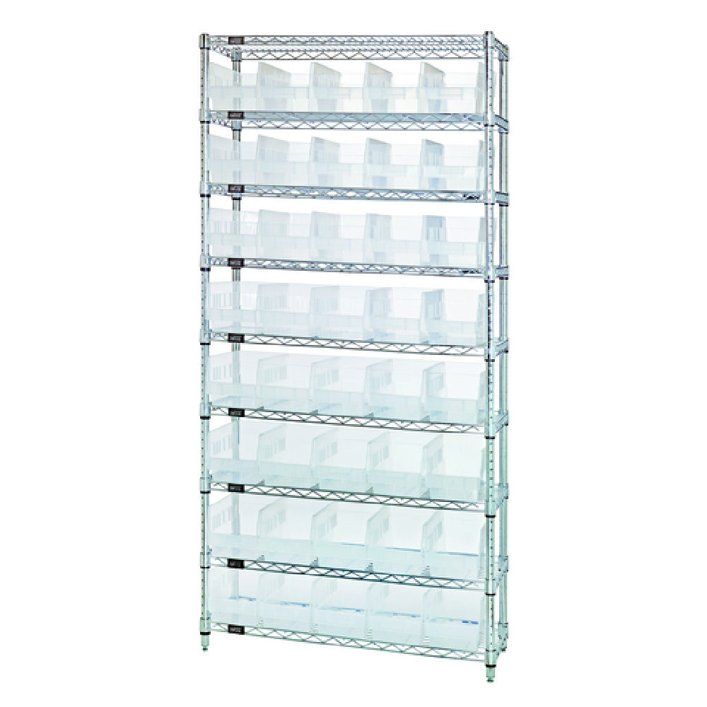 Quantum WR9-202CL Bin Wire Shelving System 36"W X 12"D X 74"H Overall Size 800 Lb. Capacity Per Shelf - 1/Kit