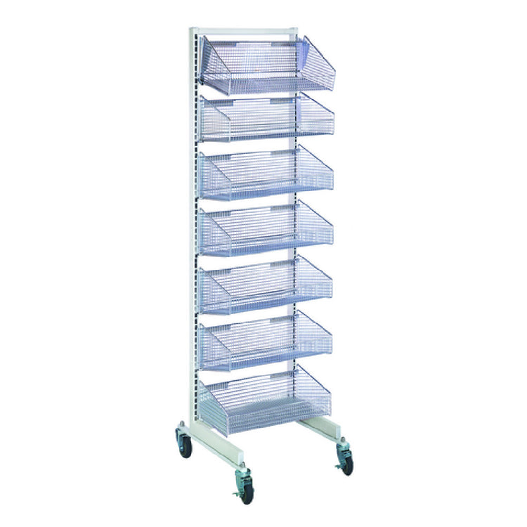 The Quantum WS70-SS18-7S Partition Wall Starter Unit Mobile Single-sided is a meticulously engineered solution for efficient space management, offering mobility and versatility in organizational setups. This single-sided unit stands at 74 inches tall, with a width of 18 inches and a depth of 26 inches, making it a compact yet spacious option for various professional environments. It includes seven 1017HBC baskets, providing ample storage capacity while maintaining easy accessibility to stored items. The unit boasts a sophisticated white and chrome finish, blending seamlessly into modern office or industrial interiors. Its mobile design allows for effortless repositioning, catering to dynamic workspaces that require frequent reconfiguration. The Quantum WS70-SS18-7S is ideal for sectors such as healthcare, retail, and education, where streamlined organization can enhance operational efficiency. The technical precision in its design ensures durability and functionality, making it an essential asset for enhancing spatial efficiency. This partition wall starter unit not only maximizes vertical storage but also contributes to an organized and aesthetically pleasing environment, supporting both practical and visual requirements of various industry segments.