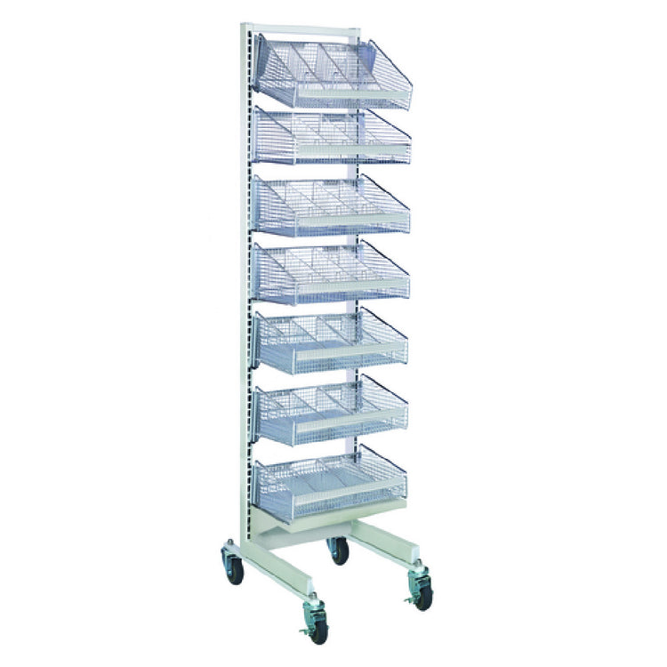 The Quantum WS70-SS36-7S15D Partition Wall Starter Unit Mobile Single-sided is a versatile and mobile storage solution designed to meet a variety of needs in industrial and commercial environments. Measuring 36 inches in width, 26 inches in depth, and 74 inches in height, this unit offers ample storage space while maintaining a compact footprint. The unit features a sleek white and chrome finish, adding a touch of modernity to its robust design. Included with the partition wall starter unit are seven 1035HBC baskets and fifteen dividers, providing extensive organizational capabilities. The single-sided design makes it ideal for placement against walls or as a standalone unit in tighter spaces. This product's mobility enhances its utility, allowing for easy transportation and repositioning within your workspace. The Quantum WS70-SS36-7S15D serves a diverse range of industries by providing a reliable storage solution that combines functionality and aesthetics, making it a valuable asset for businesses seeking efficient organization and space management.