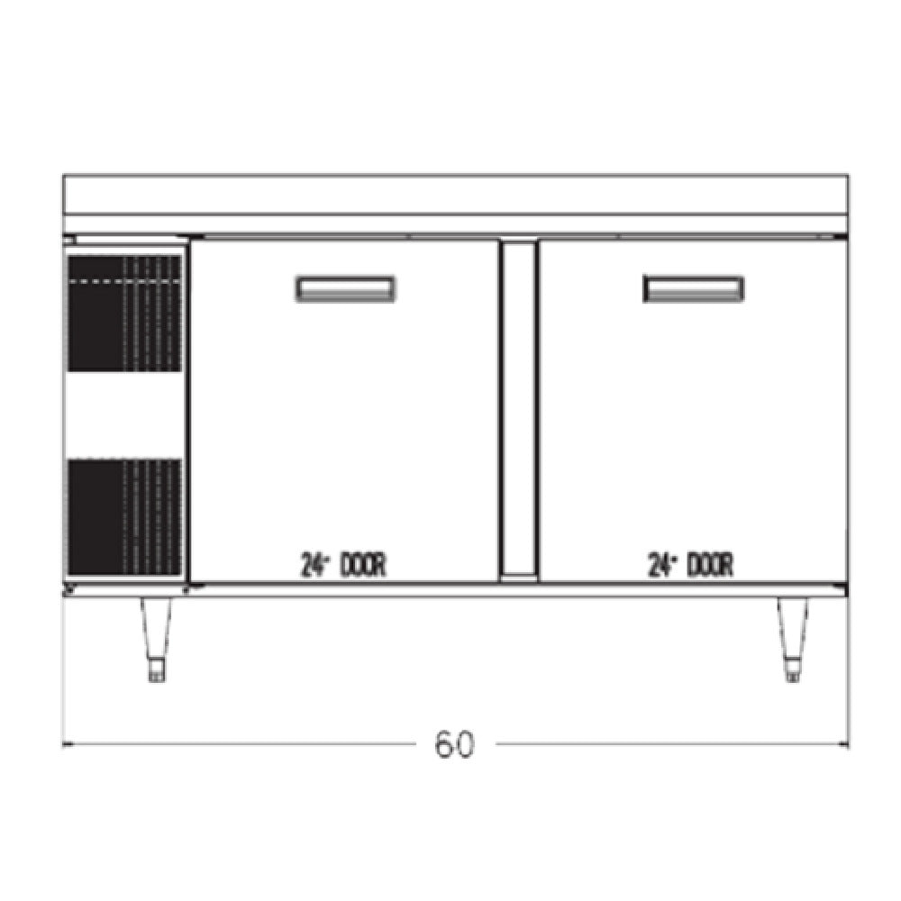 The Randell 9205F-290 Freezer Counter/Work Top Reach-in Two-section is engineered to meet the dynamic needs of commercial kitchens, blending reliability with functionality. This unit boasts a substantial 16.21 cubic feet capacity, efficiently utilizing its 60-inch width and 33-inch depth dimensions. The side-mounted self-contained refrigeration system utilizes the eco-friendly R290 Hydrocarbon refrigerant, providing an environmentally conscious solution. With two 24-inch solid hinged self-closing doors, accessibility is seamless, while the stainless steel top includes a 3-inch backsplash, enhancing durability and safeguarding against spills. The exterior is complemented by a robust aluminum interior, ensuring longevity and ease of cleaning. Supported by 6-inch adjustable legs, this freezer counter/work top remains stable on various surfaces, accommodating diverse operational environments. The refrigeration unit operates with a 1/2 HP motor, ensuring consistent and efficient cooling performance. Certified by cUL, UL, and NSF, the Randell 9205F-290 underscores its compliance with rigorous safety and sanitation standards, making it a trusted choice for food service professionals. Proudly made in the USA, this freezer counter/work top is designed for those who demand high performance, durability, and energy efficiency in their kitchen setups, making it a pivotal asset across various culinary applications.
