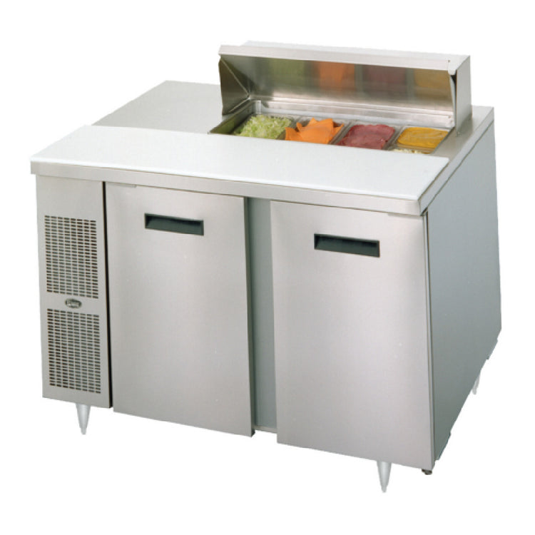 The Randell 9210-513 Refrigerated Counter/Sandwich Top Reach-in Two-section is a robust refrigeration solution tailored for diverse culinary operations. Featuring a 10.04 cu. ft. capacity, this unit measures 48"W x 33"D, providing ample storage space while optimizing kitchen layouts. Its side-mounted, self-contained refrigeration system ensures efficient cooling performance and easy maintenance. Designed with two 18-inch solid hinged self-closing doors, it enhances energy efficiency and minimizes temperature fluctuations, making it ideal for high-traffic environments. The unit accommodates up to eight 1/6 size pans, offering versatile storage solutions for various ingredients. A cutting board is included, adding convenience and functionality to food preparation tasks. Constructed with a stainless steel exterior and aluminum interior, the Randell 9210-513 promises durability and longevity, standing up to the rigors of commercial use. Powered by a 1/3 HP compressor, it meets the demands of busy kitchens with reliable performance. This unit is cUL, UL, and NSF certified, underscoring its adherence to stringent safety and sanitation standards. Proudly made in the USA, the Randell 9210-513 is a valuable asset for foodservice establishments seeking a dependable, efficient, and flexible refrigerated counter solution.