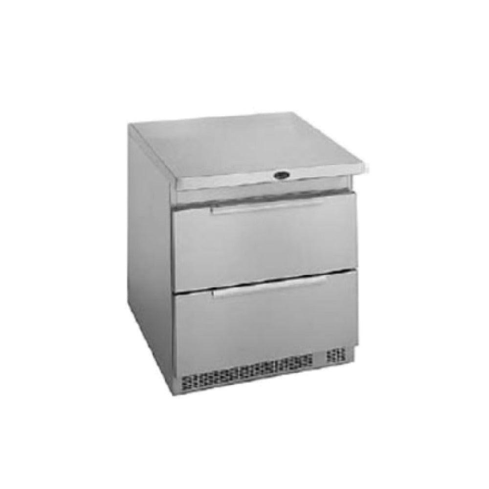 The Randell 9404-290-DW Undercounter Refrigerator Reach-in One-section stands as a versatile refrigeration solution tailored for commercial settings. With its compact 27-inch width, this undercounter unit efficiently integrates into various kitchen layouts, optimizing space without sacrificing storage capabilities. Featuring rear-mounted self-contained refrigeration and a front-breathing design, it ensures optimal performance even in confined spaces. The two 27-inch drawers provide ample organized storage while facilitating easy access to ingredients. This refrigerator is constructed with a stainless steel top, front, and sides, ensuring durability and a sleek aesthetic. Utilizing R290 Hydrocarbon refrigerant, it embraces eco-friendly practices while delivering efficient cooling performance. Powered by a 1/4 HP compressor, this unit stands out for its reliability and energy efficiency. Certified by NSF, cUL, and UL, the Randell 9404-290-DW meets stringent standards for quality and safety, making it a dependable choice for restaurants, cafes, and bars. Proudly made in the USA, it embodies a commitment to high-quality manufacturing. This refrigerator offers a blend of performance and practicality, catering to the diverse needs of culinary professionals who demand reliable refrigeration in a compact footprint.