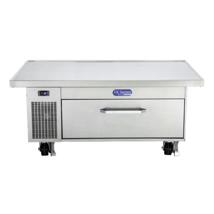 The Randell FX-1CS-52-290 FX Series Flexible Refrigerator or Freezer Chef Stand - 52" W is a versatile piece of equipment designed for culinary professionals who require adaptable cold storage solutions. This unit features a single drawer with a 3.0 cubic feet capacity, complete with a removable ABS insert for convenience and flexibility. The self-contained refrigeration system, utilizing R290 Hydrocarbon refrigerant, offers electronic control with settings as precise as 40° for refrigeration and as low as -5° for freezing, allowing chefs to customize storage conditions according to their specific needs. Built with a stainless steel finished top, front, sides, and interior, this stand ensures durability and easy maintenance, making it ideal for the demands of a busy kitchen environment. Equipped with casters, the stand provides mobility and ease of relocation within the kitchen space. Powered by a 1/4 HP motor, the Randell FX-1CS-52-290 is UL, NSF, and cUL certified, ensuring safety and compliance with industry standards. Proudly made in the USA, this chef stand is a reliable choice for food service operations seeking a compact, efficient, and flexible refrigeration or freezing solution tailored for varying culinary requirements.