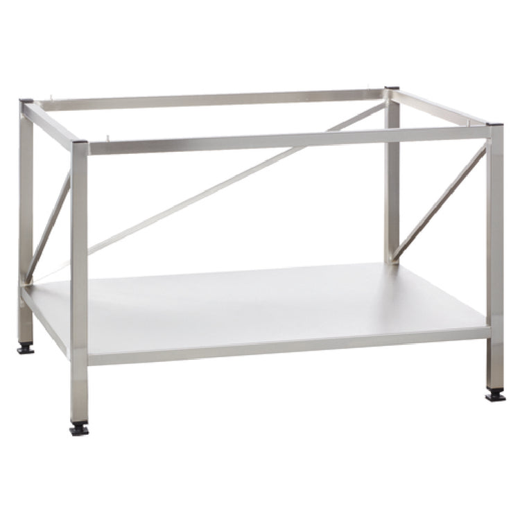 The Rational 60-30-324 UG I Stationary Oven Stand is a specialized unit engineered to support the SCC 62/CMP 102 series ovens with precision and stability. Standing at a height of 26-3/8 inches, this stand is crafted from high-grade stainless steel, ensuring durability and resistance to the demands of commercial kitchen environments. Its design, featuring all sides open, provides easy accessibility and versatility in various kitchen layouts, catering to both high-volume and space-constrained operations. This particular model is a special order item, reflective of its targeted application within specific industry segments that require customized solutions. The open-sided construction facilitates efficient heat dissipation and easy cleaning, enhancing operational efficiency and maintaining hygiene standards. The Rational 60-30-324 UG I Stationary Oven Stand represents a fusion of robust design and practical functionality, making it a strategic addition to commercial kitchens that prioritize reliability and accessibility in their equipment. Its compatibility with Rational’s renowned series of ovens underscores its role as an essential component within professional culinary settings, where precision and high performance are pivotal. This oven stand is a testament to Rational's commitment to quality and innovation in kitchen solutions.