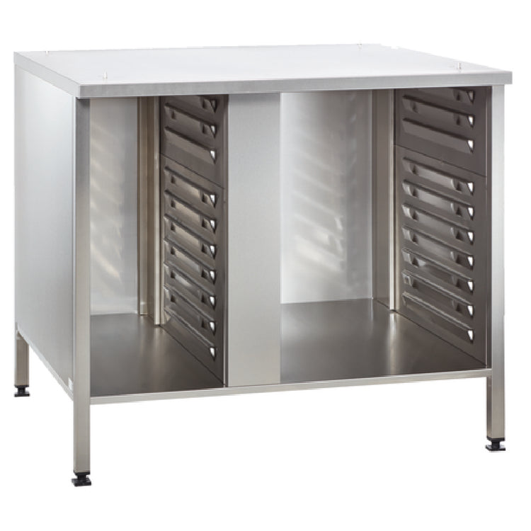 Rational 60-30-343 US III UltraVent® Mobile Oven Stand - a specialized accessory that enhances the functionality of any UltraVent® system paired with a SelfCooking Center® 62 or CombiMaster® Plus 6220. This mobile oven stand is engineered with a height of 36-5/8 inches, meticulously crafted from stainless steel, ensuring durability and long-lasting performance. It features 20 supporting rails, providing ample space and stability for ovens, along with side panels and a top & rear panel that contribute to its robust construction and sleek appearance. The Rational UltraVent® Mobile Oven Stand is a special order item, indicating its tailored design for professional kitchens that demand both efficiency and sophistication. Its mobility allows for versatile placement within a kitchen environment, making it an ideal choice for culinary professionals seeking reliable support for their high-performance cooking appliances. This product stands out for its compatibility and structural integrity, addressing the needs of commercial kitchens, from restaurants to catering services, that aim to maximize their space while ensuring their equipment is securely stationed for optimum cooking operations.