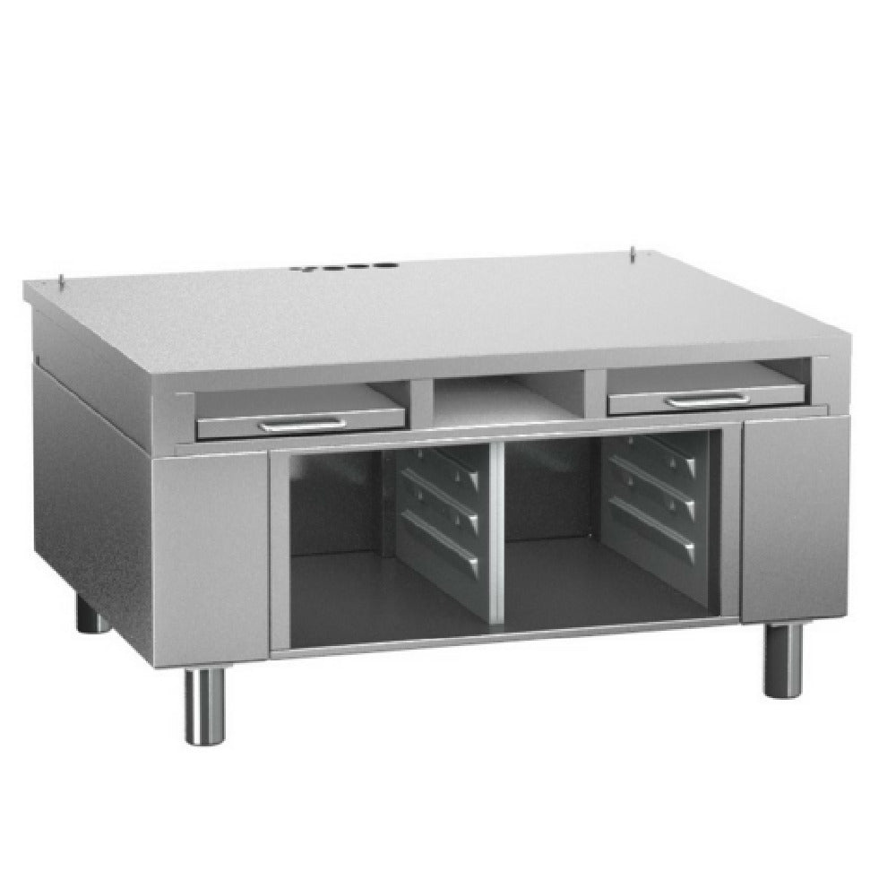 The Rational 60-31-327 Stand is a versatile piece of equipment designed to meet the varied needs of different market segments within the foodservice industry. Measuring 43-1/4 inches in width and 35-1/4 inches in depth, this stand provides a stable and spacious platform for various kitchen tasks. Its height is adjustable from 22-3/8 inches to 30-1/4 inches, offering flexibility and ergonomic comfort for users. A key feature of this stand is its electric height adjustable feet, which allow for a precise adjustment of 7-7/8 inches, ensuring it fits seamlessly into any kitchen setup. This model is equipped with two pull-out shelves and two sets of rails designed to accommodate 12" x 20" pans, maximizing organizational efficiency and accessibility. The inclusion of top and side panels adds to the durability and stability of the stand. Specifically tailored for size 2-S, the Rational 60-31-327 Stand is engineered to enhance productivity and workflow in professional kitchens, making it an essential asset for chefs and kitchen staff seeking a reliable and adaptable work station.