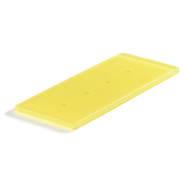 The Revol 411217 (112177) Tasting Tray is a specialized kitchenware product designed for professional and home use, distinguished by its high-quality Nacryl® resin construction. Measuring 9-3/4 inches in width, 4 inches in depth, and 1/2 inch in height, this rectangular tray is thoughtfully engineered to be both stackable and shockproof. Its unique design includes four holes, making it ideal for serving or presenting small portions or samples. The tray is thermal shock resistant, capable of withstanding temperatures from -148°F to +176°F, ensuring durability under various conditions. Notably, the Revol 411217 is food safe and non-porous, which prevents absorption of flavors and odors, maintaining the purity of the dishes served. Additionally, it is dishwasher safe, facilitating easy cleaning and maintenance. Available in a vibrant lemon color, this tray is a part of the Mealplak line and is shipped directly from France. Each case contains eight trays, catering to the needs of businesses requiring bulk quantities. Whether used in a restaurant, catering service, or home setting, the Revol 411217 Tasting Tray offers exceptional utility and style, making it a versatile choice for diverse culinary environments.