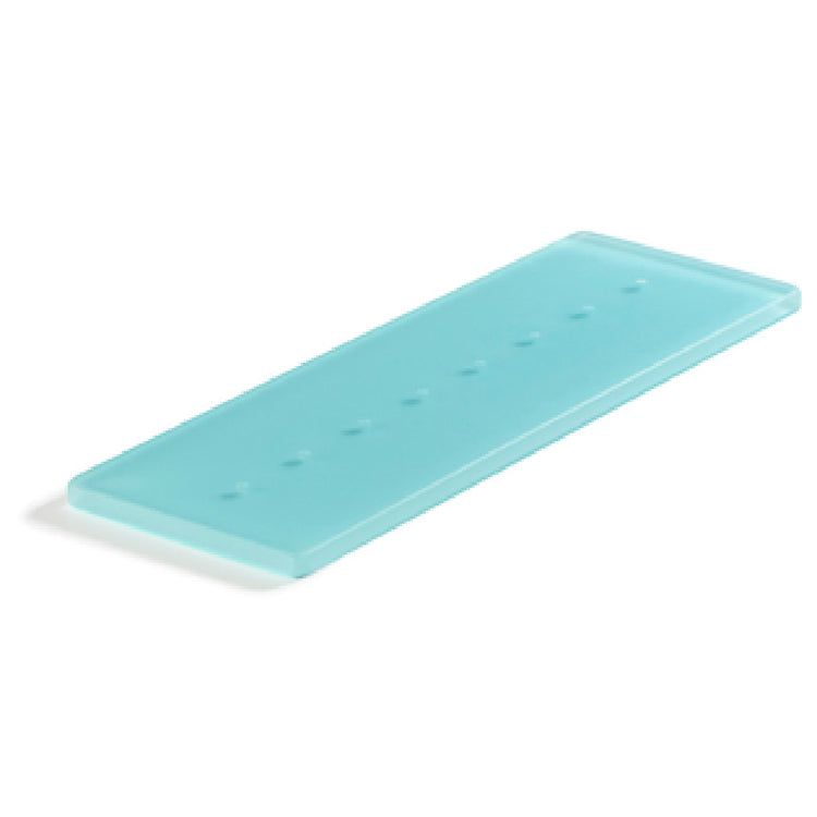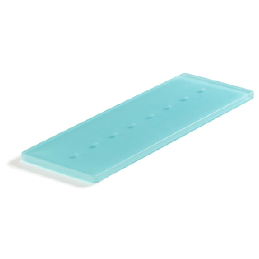 The Revol 411227 (112276) Tasting Tray is a meticulously crafted rectangular tray, measuring 11-3/4 inches in width, 4 inches in depth, and 1/2 inch in height, designed to meet the diverse needs of culinary professionals. This innovative tasting tray is distinguished by its eight strategically placed holes, allowing for an organized and appealing presentation of various tasting samples. Constructed from Nacryl® resin, the tray embodies durability and resilience, being both shockproof and thermal shock resistant, capable of withstanding temperatures ranging from -148°F to +176°F. This functionality ensures reliable performance in environments with fluctuating temperatures. Its non-porous surface makes it an exemplary choice for maintaining hygiene and food safety, further enhanced by its dishwasher-safe nature. The stackable design optimizes storage efficiency, making it a practical addition to any space-conscious culinary setting. Manufactured in France, the tray's aesthetic is accentuated by its lagoon color, offering a unique visual appeal. Suitable for a variety of industry segments, including restaurants, catering services, and food exhibitions, the Revol 411227 Tasting Tray combines elegant design with practical functionality, embodying a commitment to quality and innovation in food presentation. Packaged with eight trays per case, it ensures convenient distribution and usage.