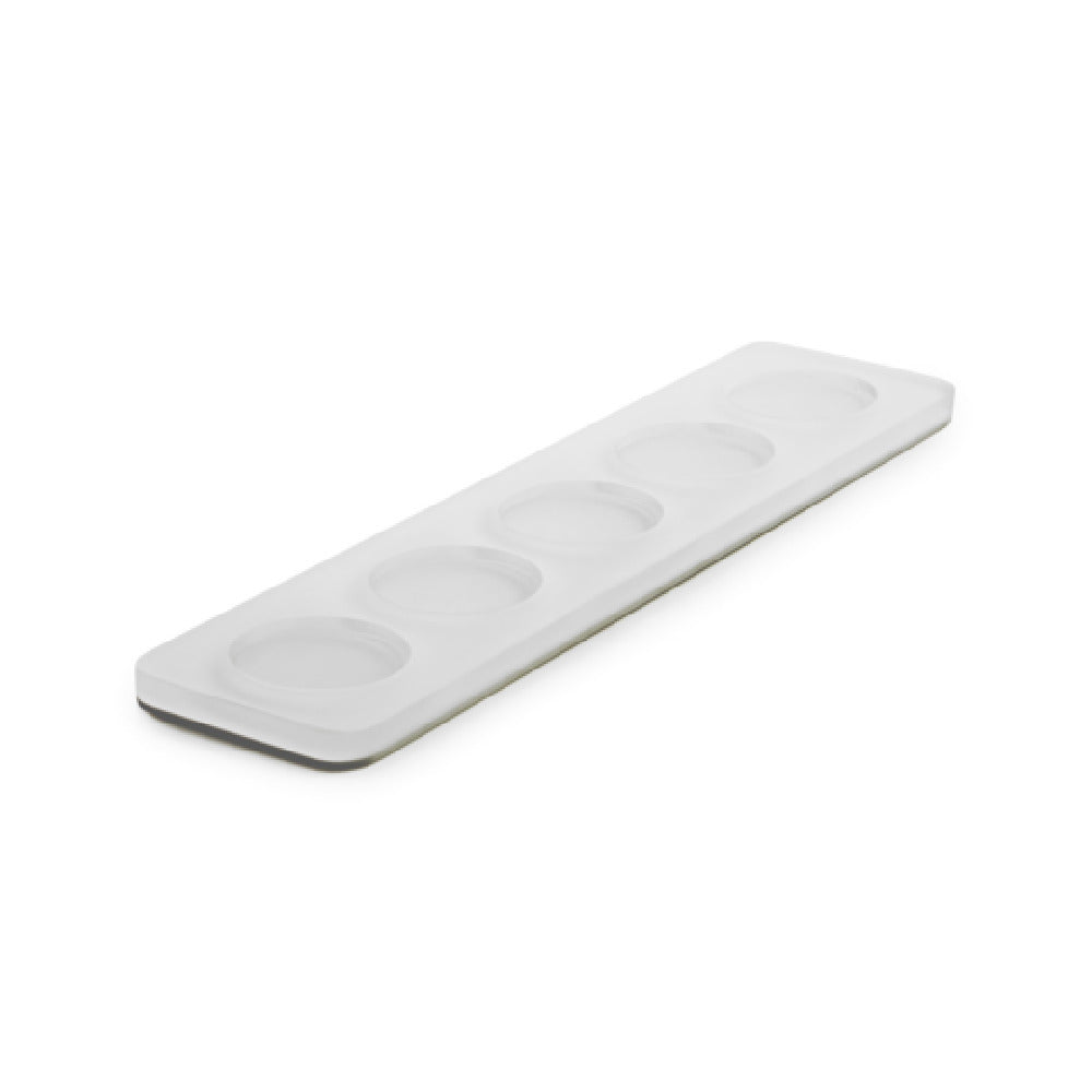 The Revol 411250 Tray With (5) Inserts is a premium kitchen accessory, meticulously crafted in France, to enhance the presentation and organization of culinary creations. This tray, shipped from France, features five inserts, offering versatile separation for a variety of food items. Made from Nacryl® resin, a high-quality material known for its food-safe and non-porous properties, the tray ensures that flavors remain distinct and contamination is minimized. It is dishwasher safe, providing ease of cleaning without compromising its integrity or appearance. The elegant white design complements any table setting, making it suitable for both professional culinary environments and upscale dining experiences. Each case contains eight trays, making it an excellent choice for catering businesses or restaurants seeking consistency in presentation. The Revol 411250 Tray is a perfect blend of functionality and aesthetics, tailored for chefs and hospitality professionals who prioritize durability and style in their kitchenware. Its thoughtful design and superior material underscore the quality and craftsmanship synonymous with products made in France, positioning it as a valuable asset in any gastronomic endeavor.