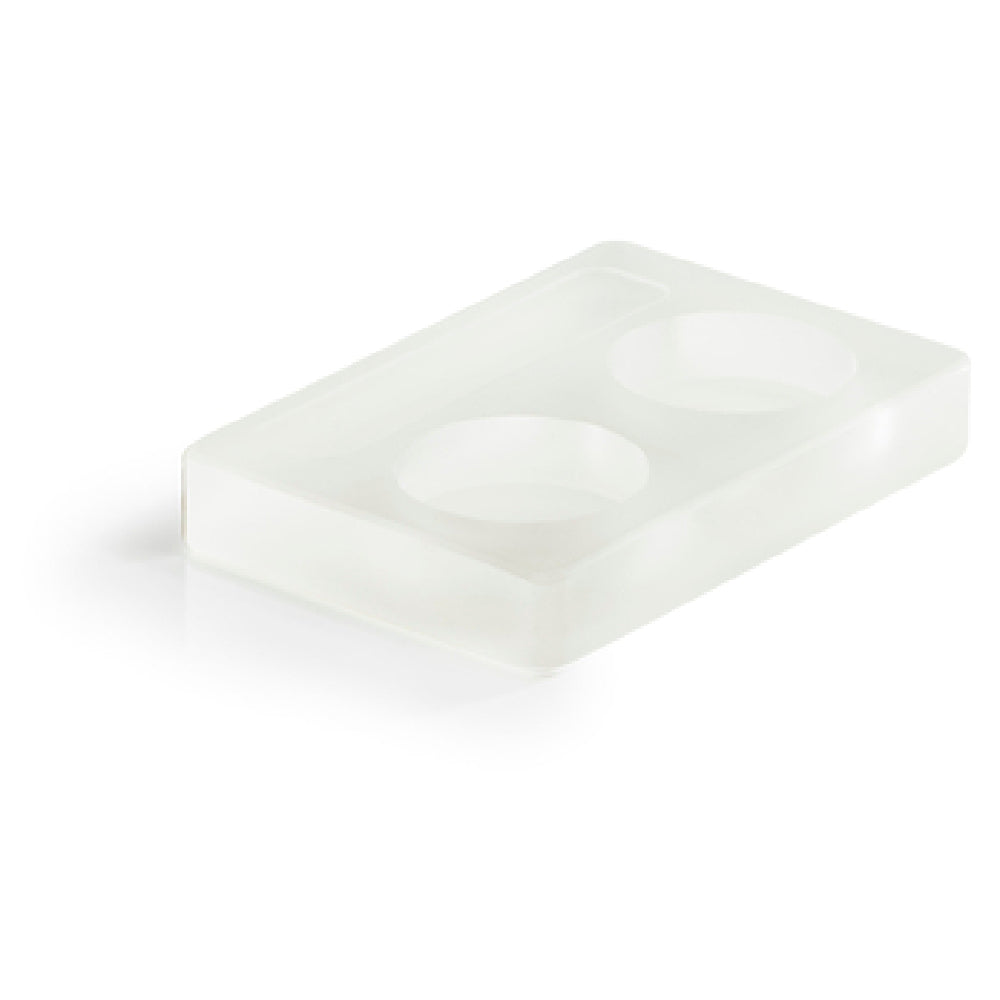 The Revol 411274 (112740) Salt & Pepper Dish is a meticulously crafted rectangular piece, measuring 4-3/4"L x 3-1/4"W x 3/4"H, designed to enhance both functionality and aesthetic appeal in culinary settings. This dish features two strategically placed wells, each with a 1-3/4" diameter, making it ideal for holding various seasonings. Its stackable design provides practical space-saving solutions for busy kitchens. Constructed from Nacryl® resin, this dish is not only shockproof and thermal shock resistant, withstanding temperatures from -148°F to +176°F, but also food safe and non-porous, ensuring hygienic storage of condiments. The pristine white finish complements diverse table settings, while its dishwasher-safe nature facilitates easy cleaning. This French-made dish embodies the elegance and durability synonymous with Revol's reputation, making it a valuable addition to both home and professional kitchens worldwide. Each case includes four pieces, perfect for establishments that prioritize both style and substance in their tableware selections.