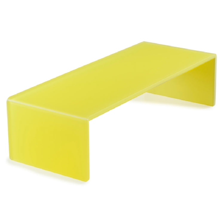 The Revol 411941 (119411) Buffet Riser is a meticulously engineered piece designed for dynamic food presentation, measuring 19-1/2"L x 7-3/4"W x 4-3/4"H. This rectangular riser is crafted from Nacryl® resin, a material renowned for its durability and aesthetic appeal. It is stackable, allowing for versatile arrangements, and its shockproof nature ensures resilience in bustling environments. Notably, the riser is thermal shock resistant, withstanding temperatures from -148°F to +176°F, making it suitable for diverse culinary applications. Its non-porous surface guarantees food safety and hygiene, as it resists absorption of moisture and odors. The lemon hue adds a vibrant touch to any buffet setting, enhancing the visual appeal of the displayed items. Additionally, the product is dishwasher safe, facilitating easy cleaning and maintenance. Made in France, this buffet riser is a testament to elegance and functionality, ideal for upscale restaurants, catering services, and hospitality venues seeking to elevate their presentation standards with a touch of French design. The Revol 411941 is shipped from France and is packed individually, ensuring it arrives in pristine condition for immediate use in enhancing your culinary displays.