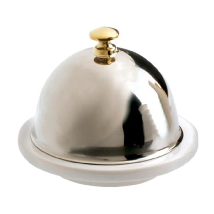 The Revol 617511 (J98+CI) Butter Dish 2-1/2 Oz. 3-1/2" Dia. X 2-3/4"H is a meticulously crafted piece designed for both culinary professionals and home enthusiasts who value quality and aesthetics in their kitchenware. This butter dish boasts a compact size with a 2-1/2 oz. capacity, perfectly suited for serving small portions while maintaining freshness. Its 3-1/2" diameter and 2-3/4" height make it an ideal fit for any table setting, combining functionality with elegance. The dish features a durable stainless steel lid that not only preserves the contents but also adds a sleek, modern touch to its appearance. Crafted from glazed porcelain, this butter dish is finished in a classic white color, offering a timeless appeal that complements any kitchen decor. As part of the Les Essentiels collection, it is readily available as a US stocked item, ensuring quick and efficient availability. Each case contains six units, making it a practical choice for businesses looking to maintain a consistent presentation across their service offerings. The Revol 617511 butter dish is a versatile and stylish addition to any dining experience, merging practicality with sophisticated design.