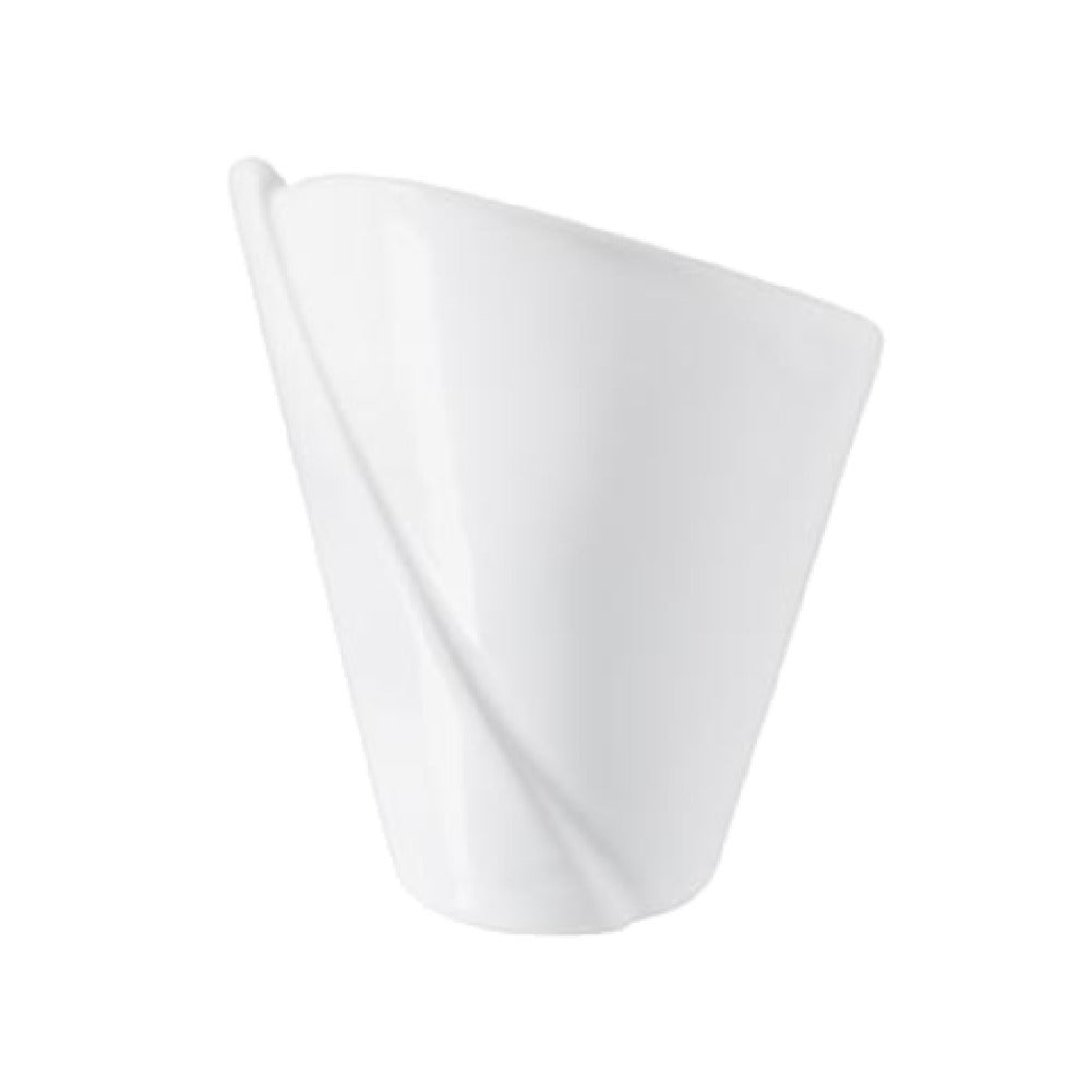 The Revol 638863 (RFC0106) Mini Cone is a versatile and compact porcelain product that ships directly from France, highlighting its international appeal and high-quality craftsmanship. This Mini Cone has a volume capacity of 1-3/4 oz., making it an ideal choice for serving appetizers, desserts, or sauces in a sophisticated manner. With dimensions of 2-1/4 inches in diameter and 2-1/2 inches in height, it is designed to fit seamlessly into diverse table settings, from casual to upscale dining environments. The product is constructed from white glazed porcelain, ensuring not only an elegant appearance but also durability and resistance to everyday use. Adding to its practicality, the Mini Cone is safe for use in the oven, microwave, freezer, and dishwasher, providing exceptional functionality and convenience for professional chefs and home cooks alike. This item is part of the Les Essentiels collection, emphasizing its timeless style and essential nature in dinnerware. Packed in cases of six, the Revol 638863 (RFC0106) Mini Cone represents a functional and stylish addition to any culinary presentation, catering to a wide range of market segments within the foodservice industry.