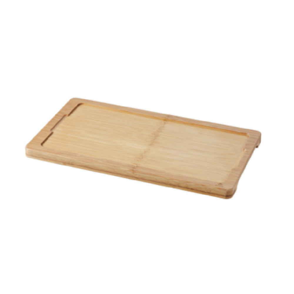 The Revol 641792 (BAPL1134) Tray 13-1/2" X 7-3/4" X 1/2"H For Rectangular Plate is a meticulously crafted serving solution designed to meet the diverse needs of culinary professionals. This tray, with dimensions of 13-1/2 inches in length, 7-3/4 inches in width, and a height of 1/2 inch, provides ample space for presenting rectangular plates. Made from high-quality bamboo, it combines elegance with durability, making it suitable for both upscale dining establishments and casual eateries. The tray's construction not only enhances the visual appeal but also ensures longevity and resistance to wear. Inspired by Revol and stocked in the USA, this product is available in convenient packaging of six trays per case, facilitating bulk purchases for restaurants, hotels, and catering services. Its sleek design and practical dimensions make it an adaptable choice for various market segments within the hospitality industry, offering a sophisticated presentation platform that complements diverse culinary styles. Whether for showcasing appetizers, entrees, or desserts, the Revol 641792 Tray enhances the dining experience by elevating the aesthetic presentation of dishes, making it an essential addition to any professional kitchen or dining setup.