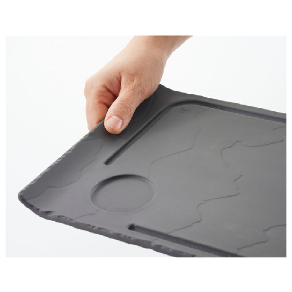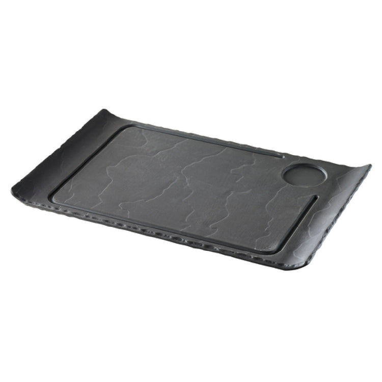 The Revol 642667 (BA0439-0) Steak Plate - a culinary marvel measuring 15-1/2"L x 9-1/2"W - sets a new standard in dining presentation with its rectangular form and elegantly curved edges. Crafted from non-porous porcelain, this plate is a testament to durability, boasting flake and scratch resistance that ensures long-lasting quality. Its matt slate style, inspired by Basalt, adds a sophisticated touch, making it an attractive option for upscale dining establishments aiming to enhance their presentation. This versatile steak plate is designed to withstand the demands of modern cooking and serving environments, being safe for use in the oven, microwave, freezer, and dishwasher. Such adaptability makes it an excellent choice for restaurants, caterers, and home chefs who require multifunctional tableware that performs without compromise. The Revol 642667 steak plate caters to varied market segments, offering a unique value proposition by combining aesthetic appeal with robust functionality. Packed four per case, it ensures practicality in bulk purchasing for larger operations. This product stands out in the competitive world of dining ware by delivering exceptional resilience and style, meeting the needs of those who value both form and function in their culinary tools.