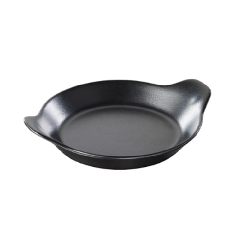 The Revol 644691 (D360N) Dish is a 7 oz. round dish with a 6-inch diameter and a height of 1-1/2 inches, tailored for various culinary and serving applications. This dish features an eared design, reminiscent of classic cast iron styles but is crafted from high-quality porcelain. The porcelain construction not only provides a sleek black finish but also ensures durability and versatility, making it suitable for both casual and formal dining environments. The Revol 644691 Dish is part of the French Classics collection and is notably dishwasher safe, streamlining the cleaning process in busy kitchens. Its compatibility with different culinary styles and service settings makes it a valuable addition to restaurants, cafes, and catering services seeking to enhance their tableware offerings. As a US stocked item, this dish is available in convenient packaging of six per case, facilitating efficient inventory management and supply chain logistics. The Revol 644691 Dish embodies a harmonious blend of traditional aesthetics and modern functionality, catering to the diverse needs of the hospitality industry.
